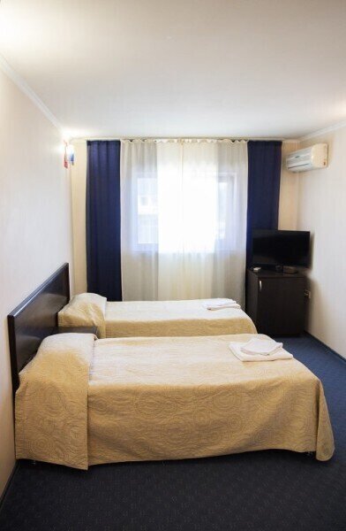 Оснащение номера: две раздельные кровати, ванная комната, ЖК - телевизор, кондиционер, холодильник, фен, туалетные принадлежности, бесплатный Wi-Fi, два комплекта постельного белья и полотенец, письменный стол, два пуфика, две прикроватные тумбочки, шкаф для одежды.