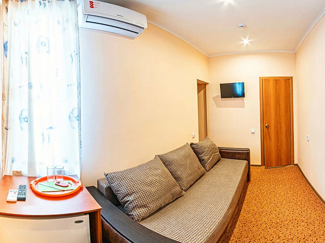 Пятиэтажное здание гостевого дома вмещает 14 номеров. Из окон гостевого дома открывается великолепный вид на Черноморское побережье и могучие Кавказские горы. Все номера оборудованы по последнему слову техники, поэтому отдых в гостевом доме «Олимп» оставит только наилучшие воспоминания и заставит вернуться вновь.