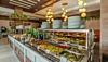 Здесь гостей ждет богатый выбор горячих и холодных блюд русской и европейской кухни, супы, разнообразные закуски и салаты,основные блюда из мяса и рыбы, несколько вариантов гарнира, молочные продукты, горячие напитки, фрукты, а также свежая выпечка и домашние десерты.