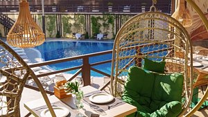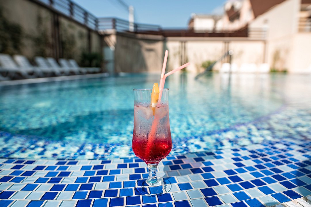 Тип бассейна: открытый бассейнВода в бассейне: подогреваемый бассейнРядом с бассейном: шезлонги, бар у бассейнаТемпература в бассейне: 26 °CРазмеры: 18 x 22 мВремя работы: от 8:00 до 20:00Глубина (диапазон): от 140 до 160 смПериод работы: круглогодичноВ бассейне есть специальная детская зона для маленьких гостей. Глубина детской зоны — 60 см.