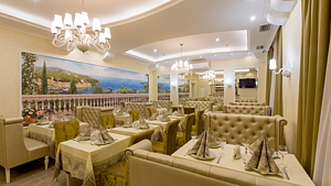 Скромный по размеру, но эффектный по убранству оформления и одновременно удобный по расположению зал находится на 1-м этаже отеля (1 корпус) и идеально подходит как для небольших банкетов, семейных праздников, корпоративов или свадебного торжества, так и для проведения конференций, семинаров, бизнес-завтраков и презентаций.