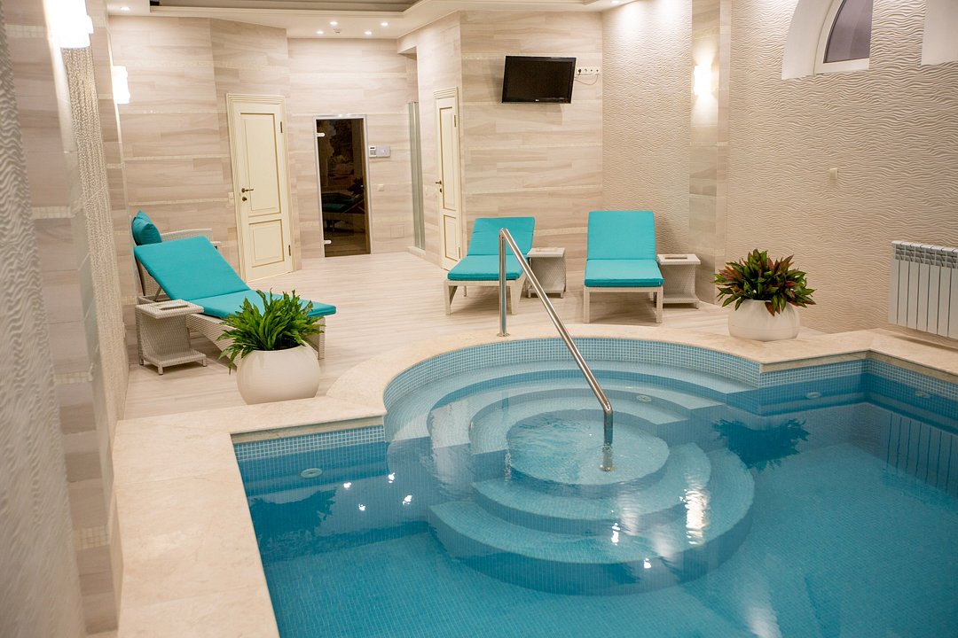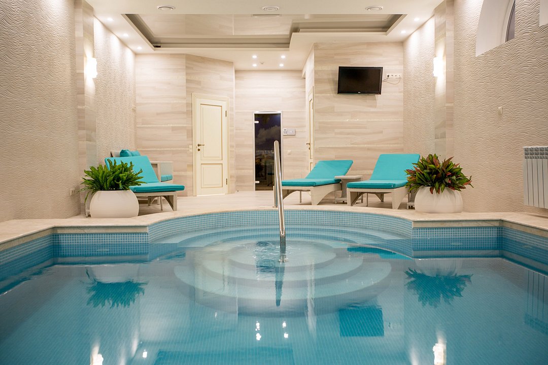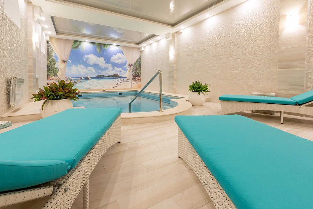 Тип бассейна: крытый бассейнРядом с бассейном: шезлонги, полотенцаРазмеры: 5 x 4 мВремя работы: от 8:00 до 20:00Период работы: летний сезонУслуга оплачивается отдельноИнформация от 01 сентября 2025