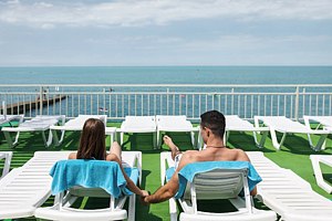 Читать полностьюК услугам гостей двухуровневая пляжная зона: