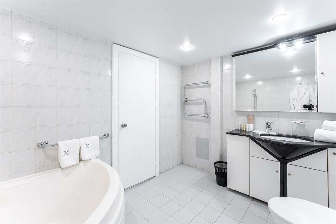 Wi-Fi, кондиционер, светильник, фен, ванна, санузел, халаты, банные полотенца, пляжные полотенца, тапочки, балкон, кровать «King size», две односпальные кровати, кресла, тумбы, стулья, шкаф для одежды, комод, чайный набор, обслуживание номеров, сейф, чайник, мягкая мебель, ковровое покрытие, отопление, две спальни, стаканы, стол, панорамные окна, сушилка для белья, телевизор с плоским экраном, мини-холодильник, москитная сетка, двуспальный раскладной диван-кровать, уборка номера, туалетные принадлежности премиум-класса, вешалки-плечики, мыло, затемняющая штораВ номере