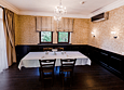 Коттедж пансионата «Сокол» оснащен частной сауной с уютным предбанником, превращая пребывание в коттедже в идеальный выбор для отдыха и дружеских встреч в любое время года.