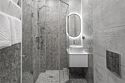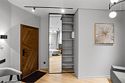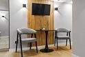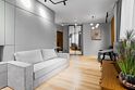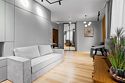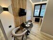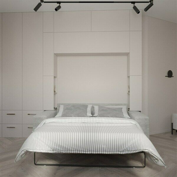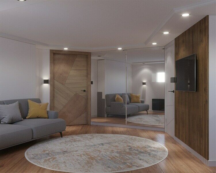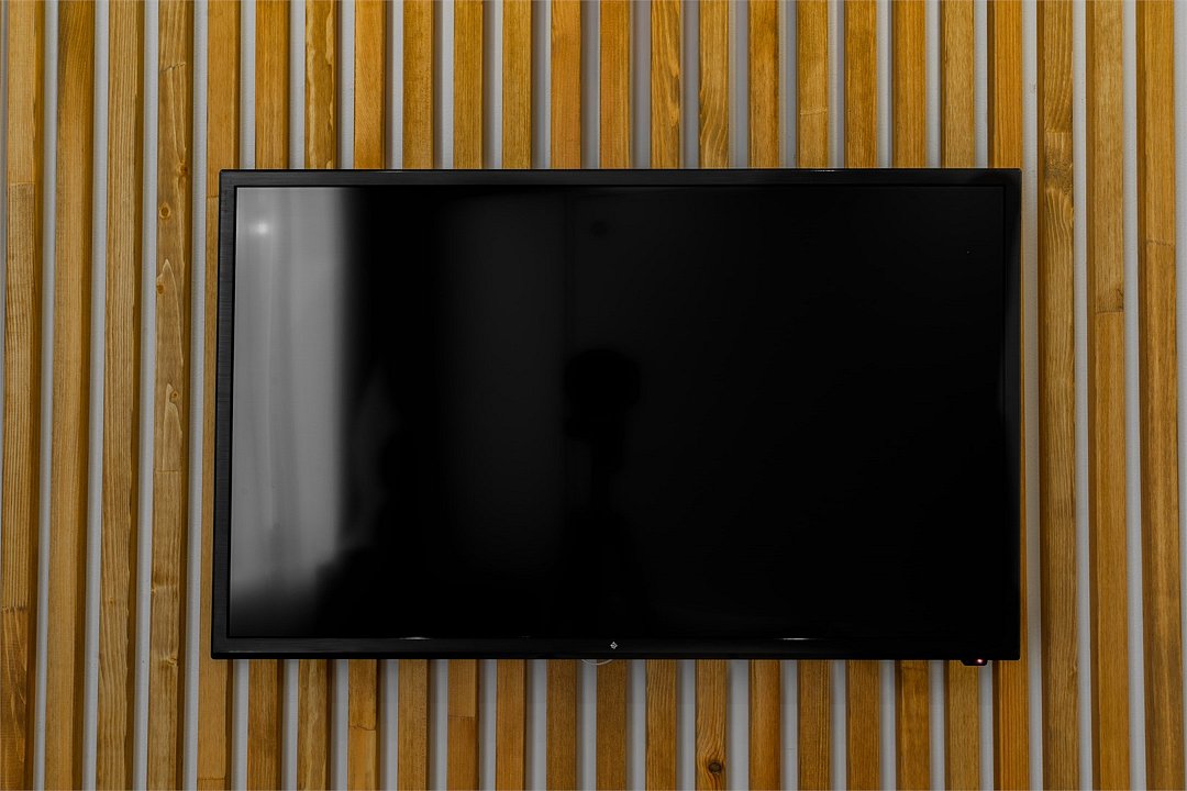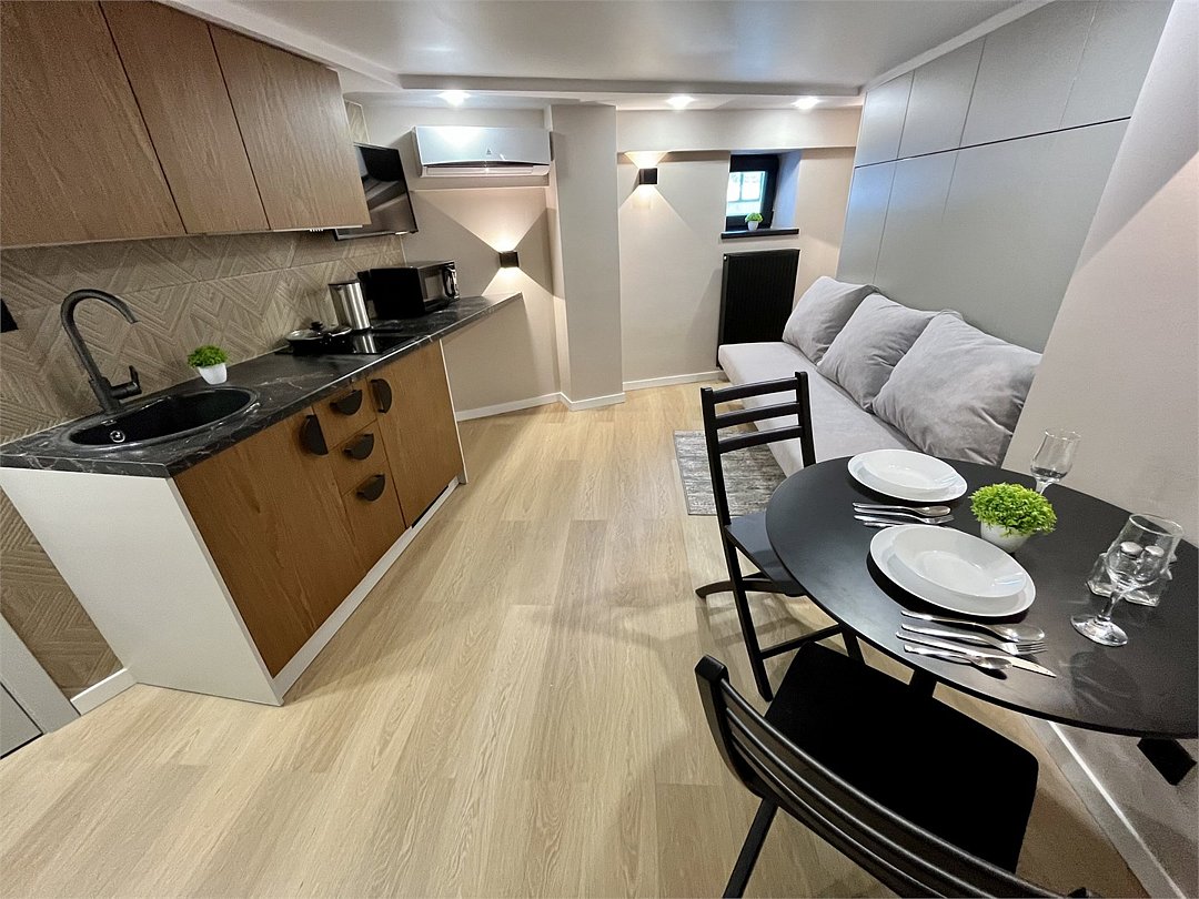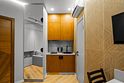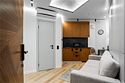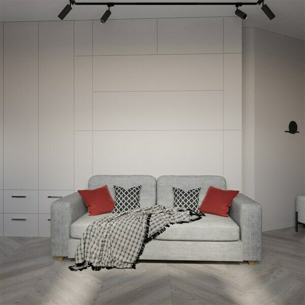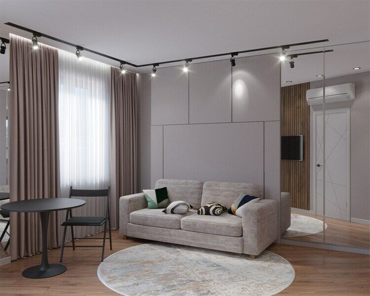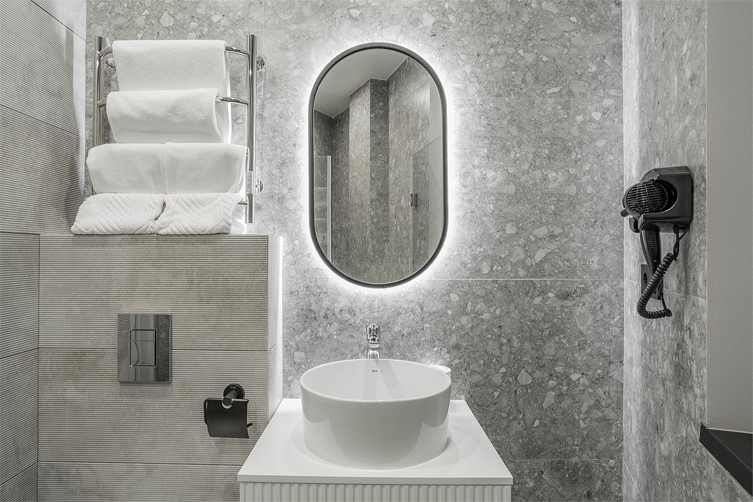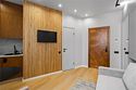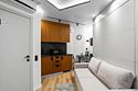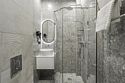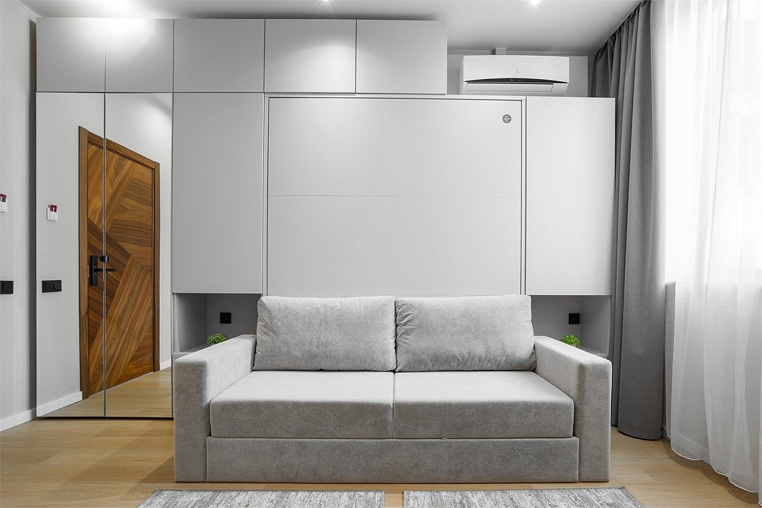 Стильный номер оснащен двуспальным раскладным диваном и телевизором. Отдельный санузел оснащен душевой. В гостевой постояльцев оживает ресепшен и мягкий диван для отдыха.