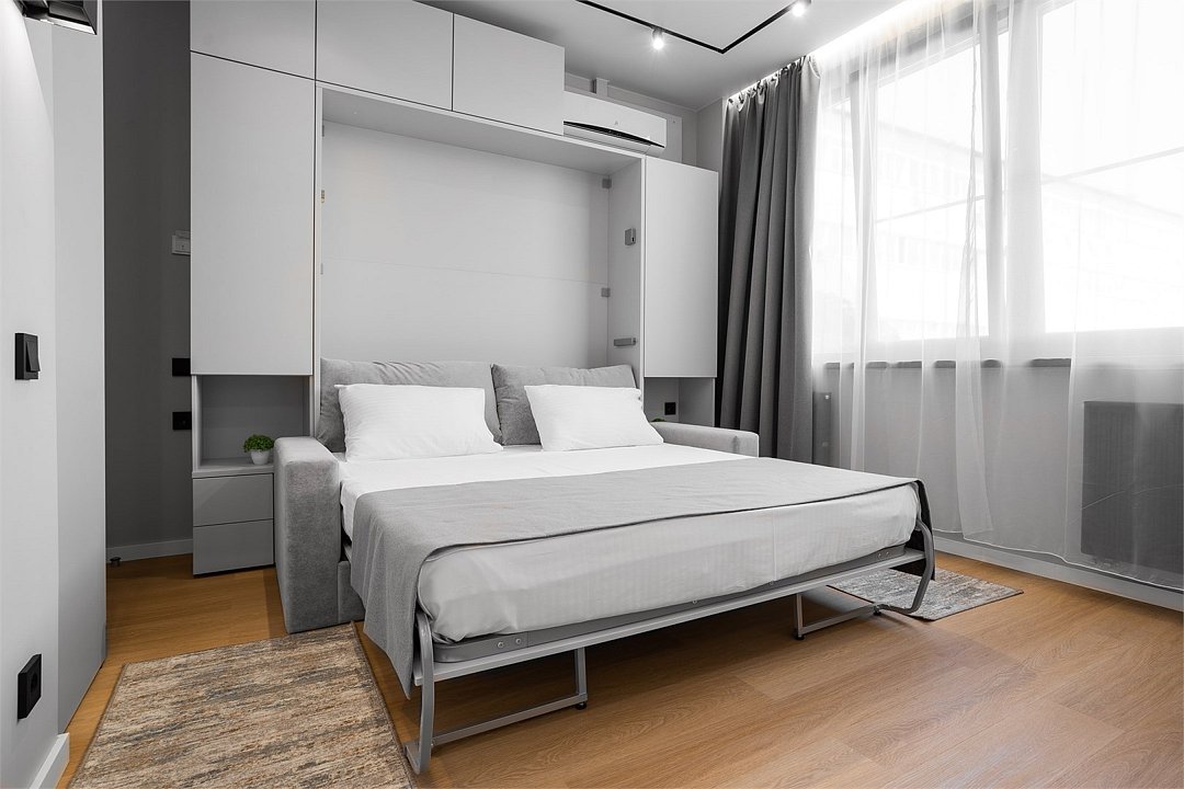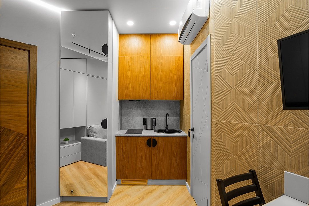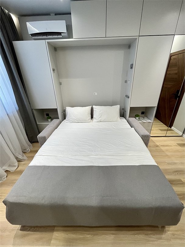 Wi-Fi, кондиционер, фен, электронные замки, плита для приготовления пищи, микроволновая печь, душевая кабина, санузел, банные принадлежности, банные полотенца, стулья, шкаф для одежды, кухня, набор посуды, обслуживание номеров, отопление, вид на город, плиточное покрытие, кухонная посуда, стаканы, столовые приборы, стол, туалетные средства, сплит-система, сушилка для белья, диван-кровать, телевизор с плоским экраном, мини-холодильник, москитная сетка, чайная станция, вешалки-плечики, можно с питомцамиВ апартаментах