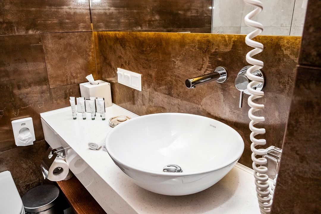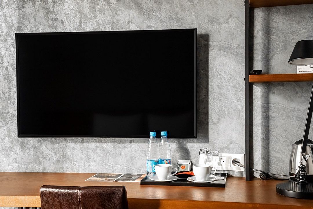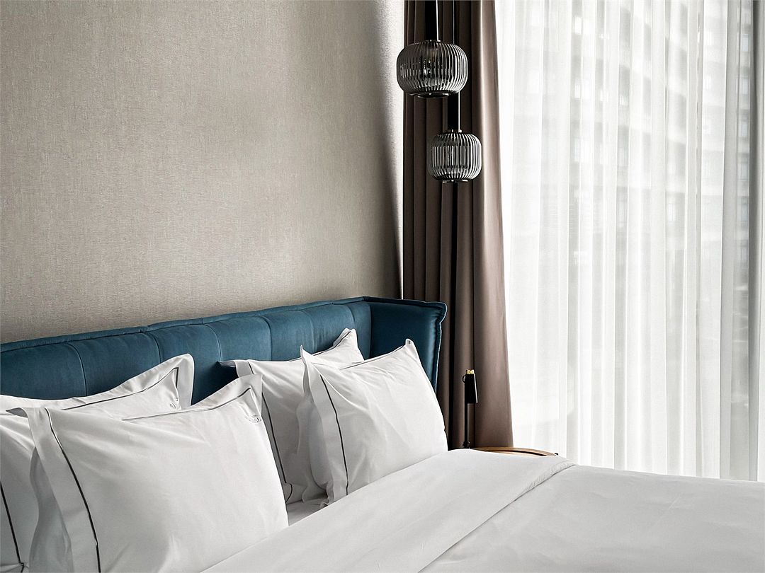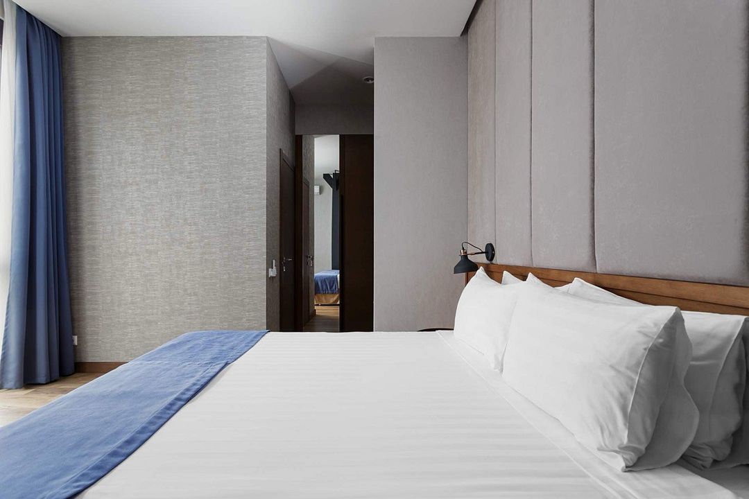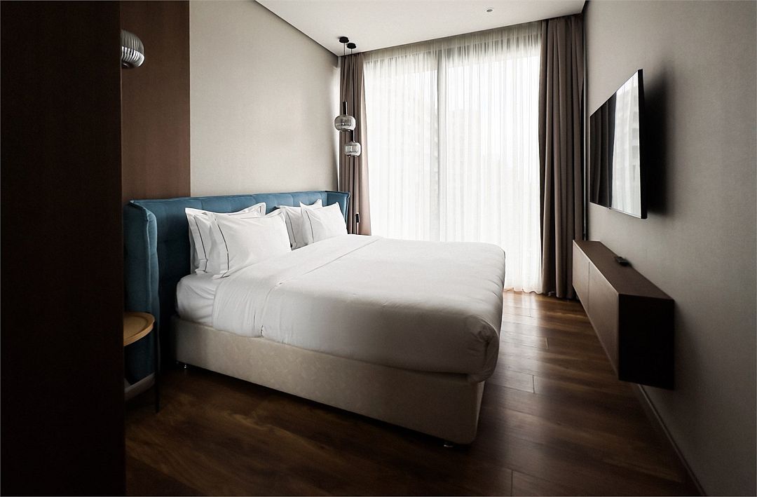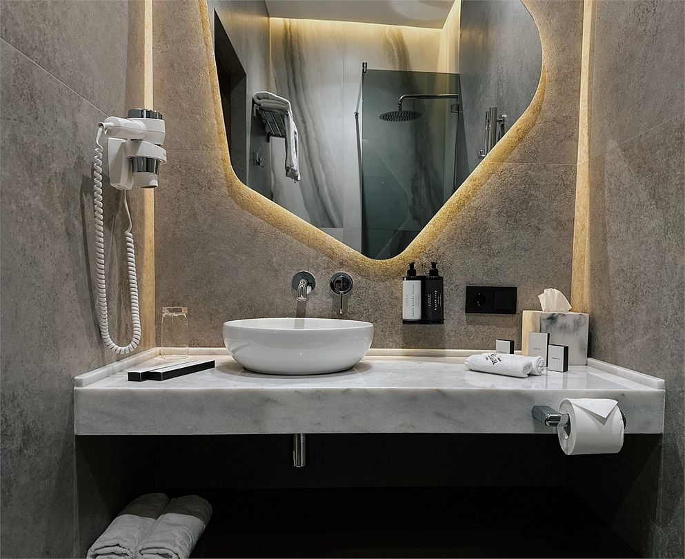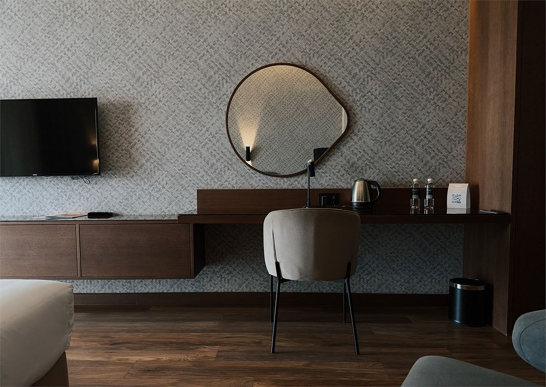 Современный однокомнатный номер с дизайнерской отделкой — комфортная база для проживания у моря или поездки по делам. Здесь всё собрано так, чтобы было удобно жить: качественный сон, рабочее место, понятное наполнение без лишнего. В номере: двуспальная кровать или две раздельные кровати с ортопедическими матрасами, рабочая зона со столом, система климат-контроля, сейф, мини-бар, чай/кофе, Wi-Fi, телевизор со спутниковым ТВ, телефон. В ванной комнате — душевая кабина, фен, халаты, тапочки и премиальная косметика. Кому подойдёт: деловые поездки, активный отдых вне номера, гости, которым важны тишина и функциональность.Услуги и удобства