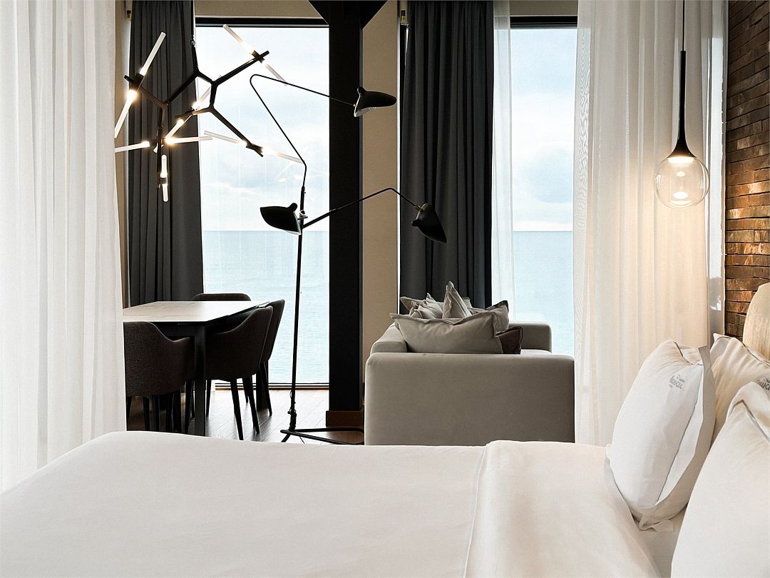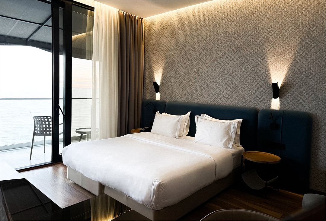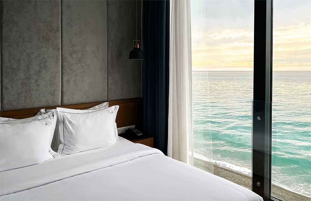 Компактный номер с прямым видом на море — когда важно просыпаться и видеть воду сразу. Отличный вариант для коротких поездок, романтических выходных и тех случаев, когда вид становится частью впечатления от отдыха. В номере: двуспальная кровать или две раздельные кровати с ортопедическими матрасами, рабочий стол, климат-контроль, сейф, мини-бар, чай/кофе, Wi-Fi, телевизор со спутниковыми каналами, телефон. В ванной комнате — душевая кабина, фен, халаты, тапочки и премиальная косметика. Кому подойдёт: парам, эстетам, тем, кто планирует больше времени проводить в номере и жить с морем в кадре.Услуги и удобства