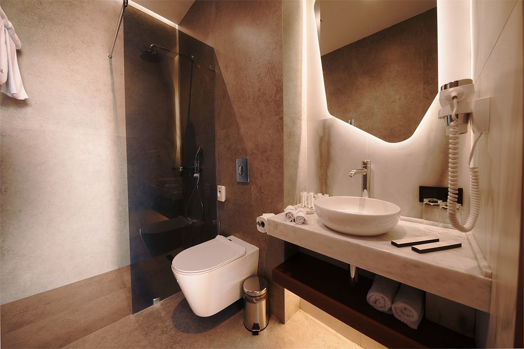 телевизор, спутниковое телевидение, Wi-Fi, телефон, кондиционер, светильник, фен, весы, электронные замки, кофемашина, душевая кабина, санузел, теплый пол, халаты, тапочки, косметические средства, кровать «King size», гладильная доска, ортопедический матрас, диван, тумбы, стулья, шкаф для одежды, вешалки, письменный стол, зеркало, письменные принадлежности, чайный набор, обслуживание номеров, сейф, чайник, унитаз, отопление, душ, вид на море, кресло, стаканы, стол, туалетные средства, туалет, диван-кровать, раскладной диван, внутренний телефон, шкаф-купе, телевизор со Smart TV, номер для некурящих, электронный консьерж 24/7, чайная станция, уборка номера, услуги прачечной (платно), бутилированная вода, мини-бар (платно), шапочка для душа, мыло, окна от пола до потолка, зеркало в полный рост, еда на вынос (за дополнительную плату), тропический душВ гостиничном номере