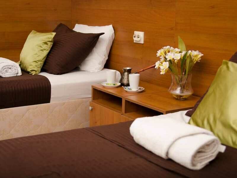 При отеле работает кафе. К услугам гостей сауна, беспроводной интернет, для автовладельцев возле корпуса организована парковка.