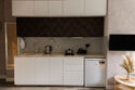 В числе удобств кондиционер, полностью оборудованная кухня, телевизор с плоским экраном и собственная ванная комната с биде, халатами и тапочками. Среди прочих удобств микроволновая печь, холодильник, духовка и чайник.