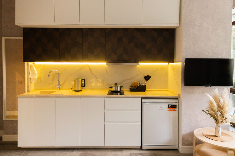 Шикарные апартаменты, прекрасный вид на море, вкусная еда. До центральной улицы 5 минут езды на машине.