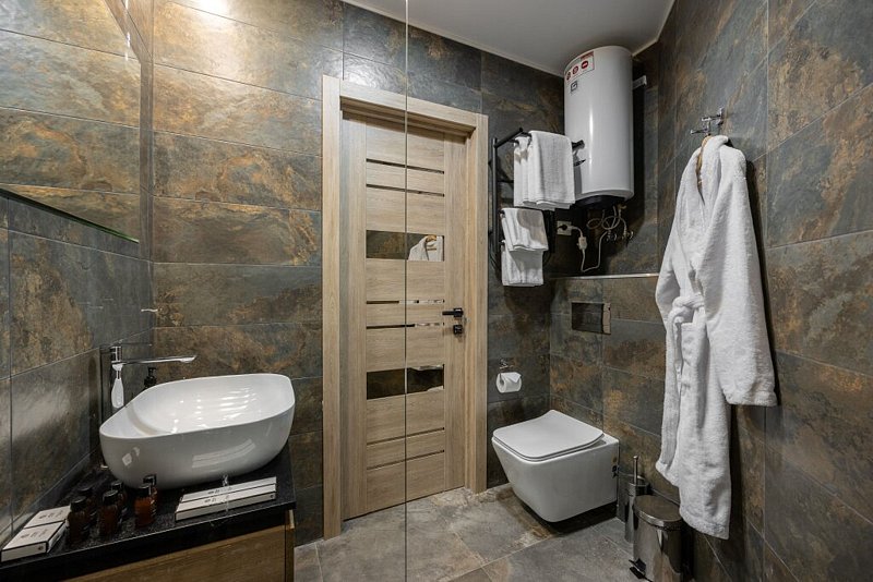 с/у, душ, ТВ, двуспальная кровать, мини бар, фен, чайник, кофемашина, сейф, биокамин