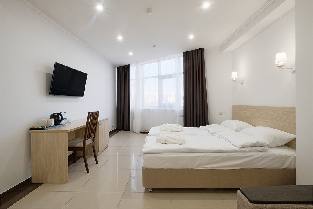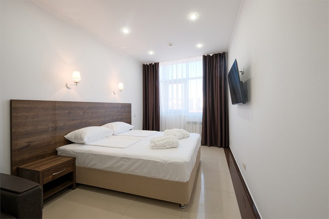 Шестиэтажный корпус отеля, расположенный на закрытой охраняемой территории, предлагает гостям уютные двухместные номера различных категорий. Светлые номера оснащены всем необходимым для комфортного пребывания: санузлом с душем, сплит-системой, плазменным телевизором и феном. В некоторых номерах предусмотрены мини-кухни и балконы. Для вашего удобства в отеле также предоставляются услуги прачечной и беспроводной интернет.