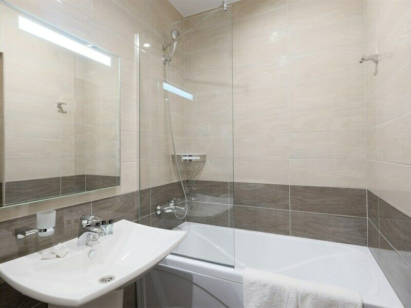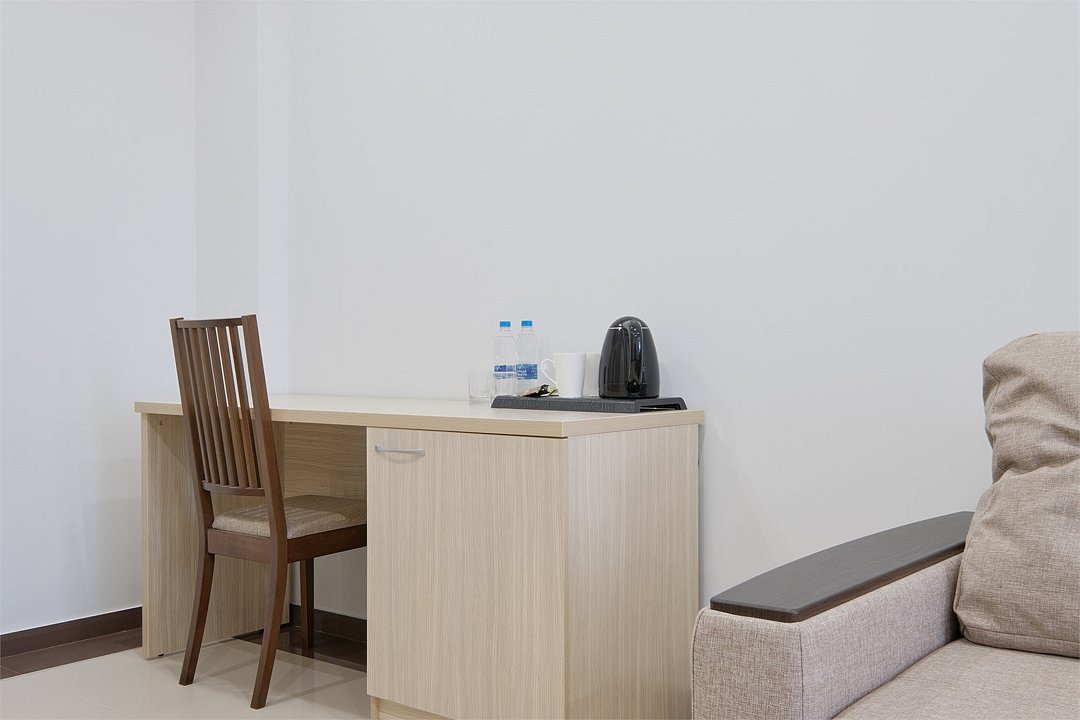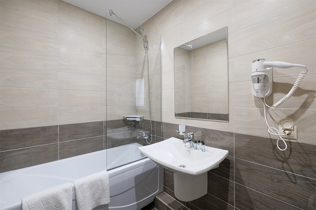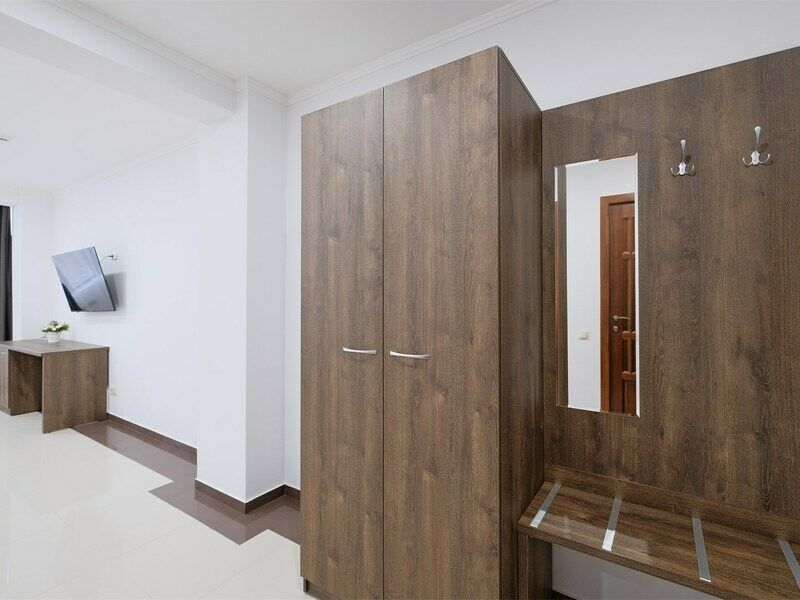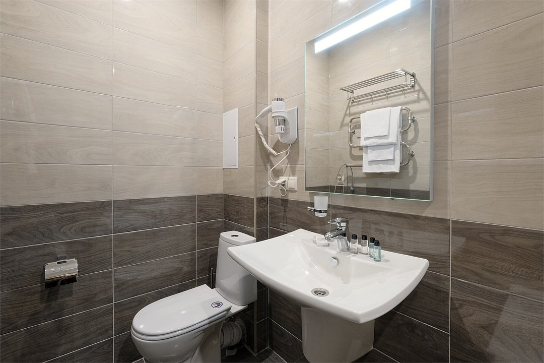 Wi-Fi, фен, ванная комната, ванна, халаты, банные полотенца, тапочки, косметические средства, двуспальная кровать, тумбы, шкаф для одежды, вешалки, обеденный стол, багажная тумба, зеркало, набор посуды, сейф, чайник, унитаз, раковина, питьевая вода, отопление, вид на город, плиточное покрытие, стаканы, стул, туалетные средства, туалет, сплит-система, сушилка для белья, цифровое тв, раскладное кресло, телевизор с плоским экраном, мини-холодильник, телевизор со Smart TV, номер для некурящих, рабочий стол, можно с питомцамиВ номере