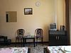 Гостей ждут двух и трехместные номера с удобствами. В каждом номере: Wi-Fi, телевизор, мини-холодильник, фен, утюг, гладильная доска, электрический чайник, набор посуды, санузел с душевой кабинкой или ванной, балкон с видом на сад. Для клиентов с детьми в номерах есть детские кровати.