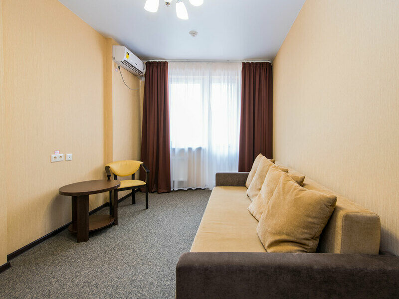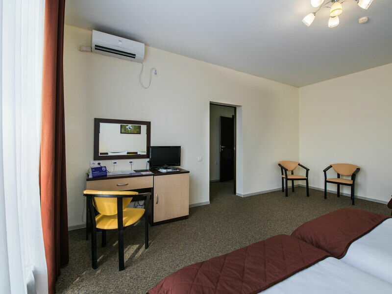 Комплекс занимает благоустроенную территорию и состоит из 9 пятиэтажных жилых корпусов, с лифтами. Жилой фонд предлагает своим гостям однокомнатные и двухкомнатные номера Стандарт. Светлые просторные номера хорошо меблированы и укомплектованы необходимой бытовой техникой. Везде имеется собственный санузел с душем и кондиционер.