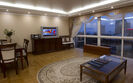 В 5-этажном корпусе – четыре категории номеров: можно жить в стандарте, люксе, студии или апартаментах. В номерах есть все современные удобства: санузел и фен, Wi-fi и телевизор, кондиционер и холодильник, телефон и мини-бар.