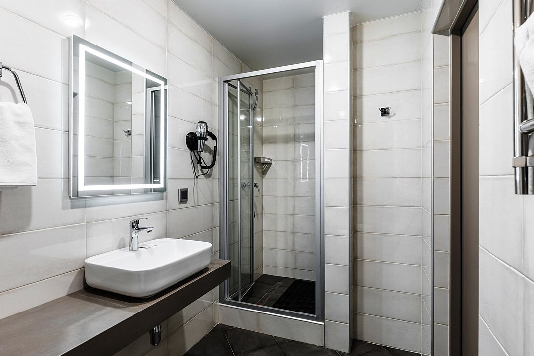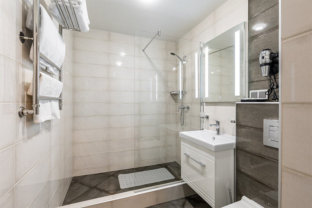 кабельное телевидение, Wi-Fi, холодильник, светильник, фен, электронные замки, плита для приготовления пищи, микроволновая печь, ванная комната, душевая кабина, халаты, банные полотенца, тапочки, гигиенические средства, косметические средства, кровать «King size», тумбы, стулья, шкаф для одежды, гардеробная, вешалки, обеденный стол, багажная тумба, зеркало, ковер, мебельный гарнитур, две комнаты, кухня, письменные принадлежности, набор посуды, сейф, чайник, унитаз, раковина, гостиная зона, отопление, душ, вид на город, кулер на этаже, плиточное покрытие, кресло, кухонная посуда, стаканы, кухонная утварь, столовые приборы, стул, туалетный столик, туалетные средства, туалет, сплит-система, раскладное кресло, внутренний телефон, телевизор с плоским экраном, кухонный уголок, москитная сетка, гостиничная парфюмерия, номер для некурящих, пуфик, кресло-кровать, можно с питомцамиВ гостиничном номере