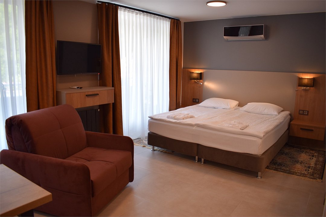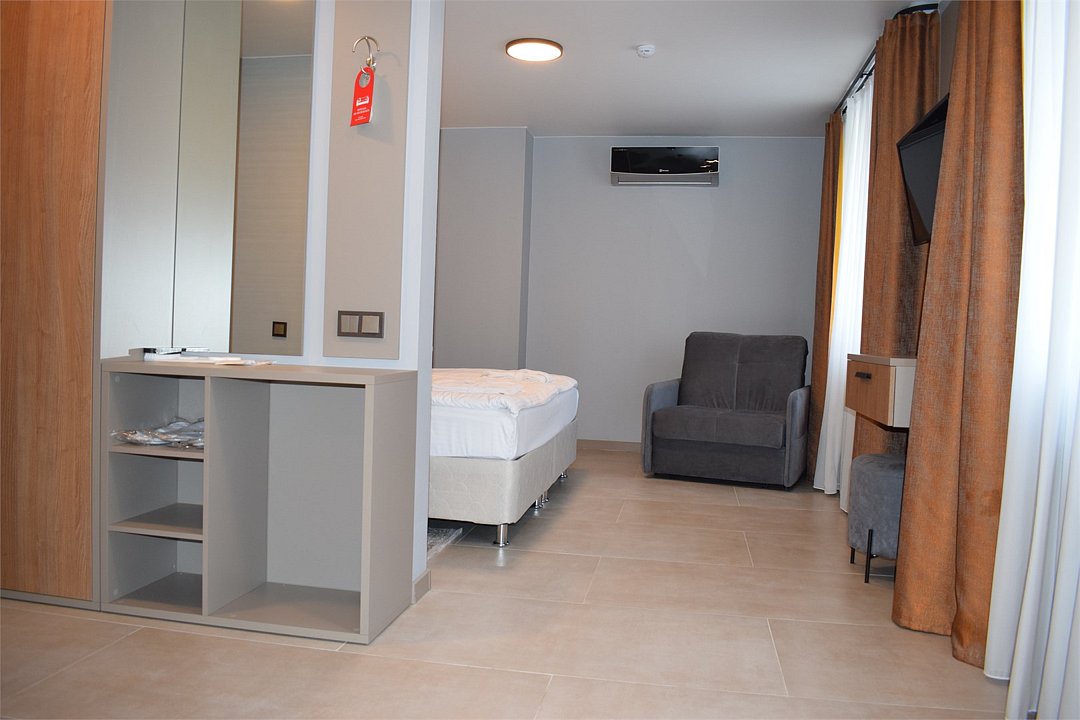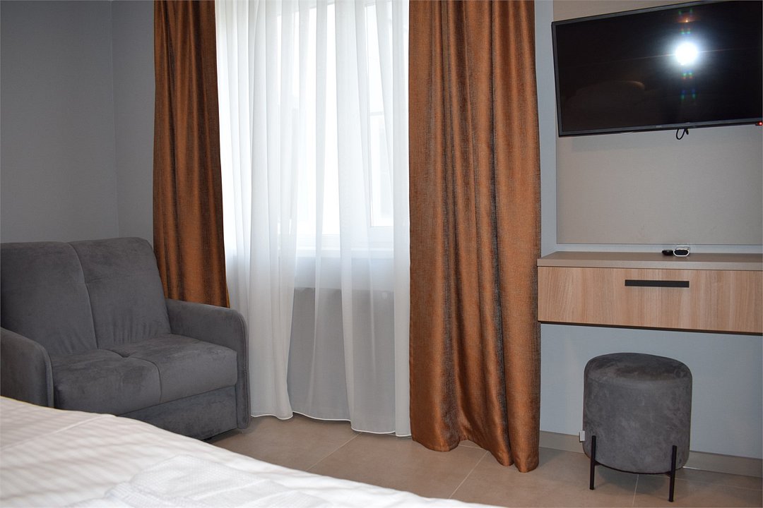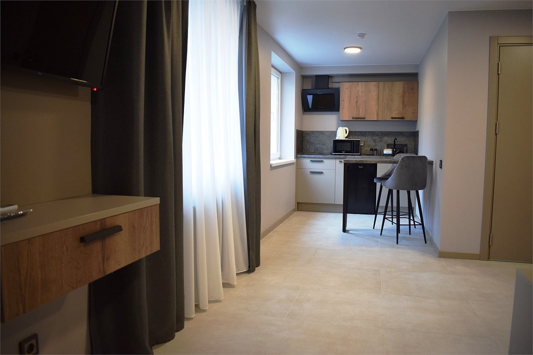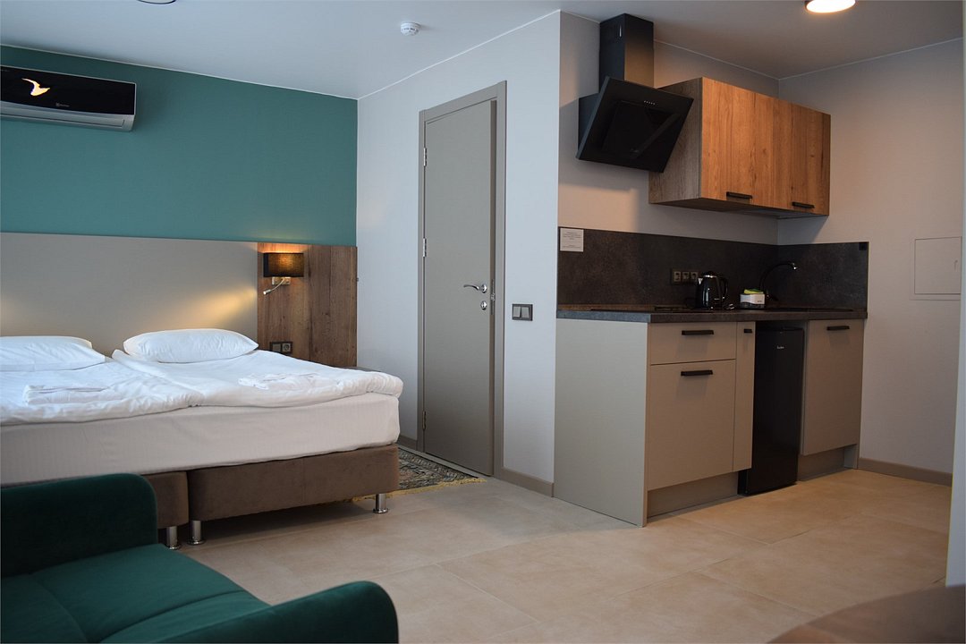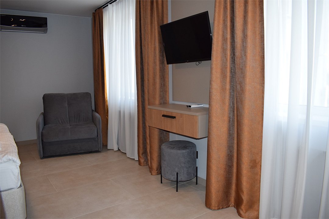Уютный номер высшей категории студия плюс. Однокомнатный номер с собственным сан узлом, а так же оборудован полноценной обеденной зоной с кухонным уголком. Есть дополнительное место - раскладное кресло. Данный номер находится в Корпусе «Сочи» на 2 этаже. При регистрации заезда гражданам РФ необходимо предъявить оригинал общегражданского паспорта. При размещении с детьми в возрасте до 14 лет следует предоставить оригиналы их свидетельства о рождении. Гостям в возрасте до 18 лет следует иметь при себе письменное согласие от одного из родителей на проживание в отеле (при размещении без родителей). Иностранным гражданам необходимо предъявить иностранный паспорт, визу и миграционную карту. Обратите внимание: При заселении в номера высшей категории (студии, апартаменты) взимается обеспечительный платеж (страховой залог) в размере 5000 рублей наличными или банковской картой. Эта сумма возвращается в день регистрации отъезда тем же способом, каким она была списана после проверки состояния номера.Услуги и удобства