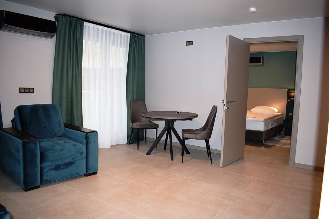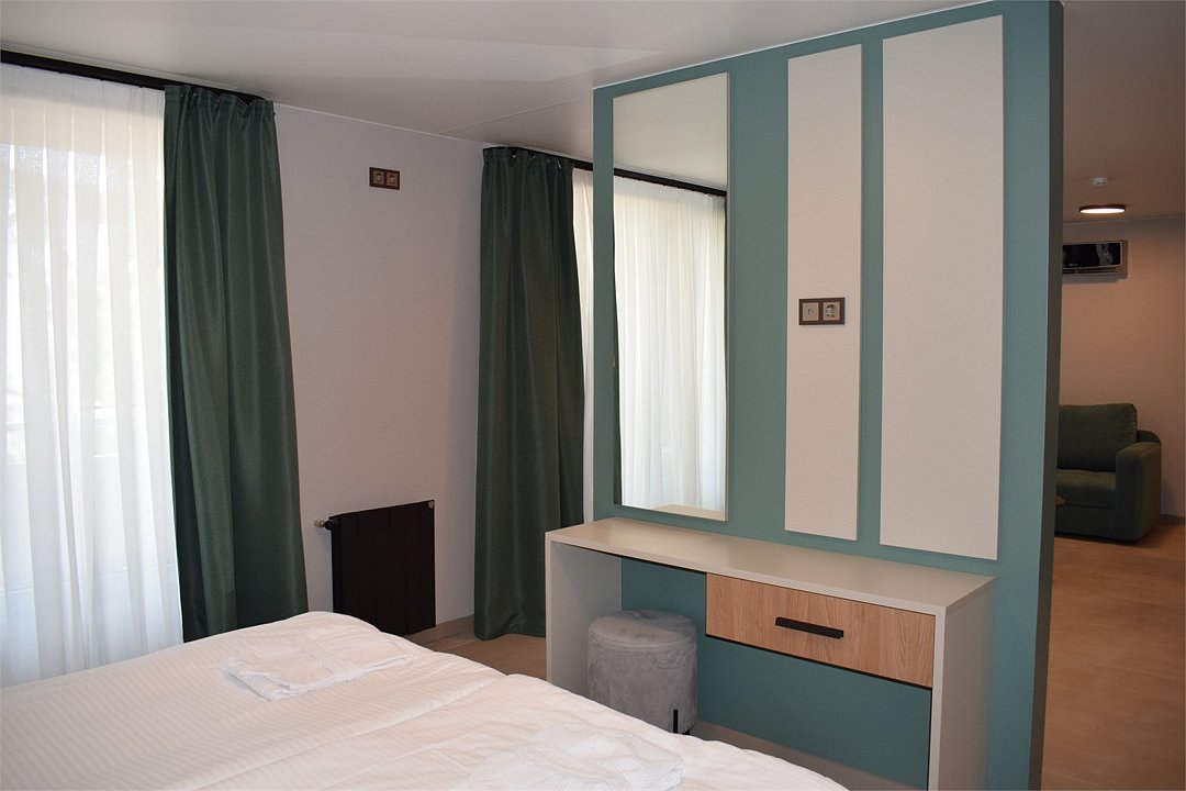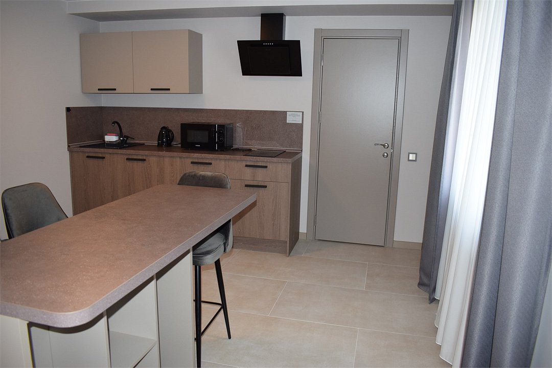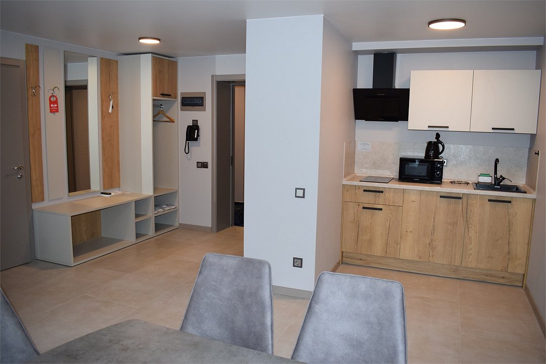 Номер высшей категории апартаменты с одной спальней и собственным сан узлом, а так же гостиной с полноценной кухонной зоной. Данный номер подойдет как для комфортного семейного отдыха, так и для деловой поездки. Есть дополнительное место - раскладное кресло. Данный номер находится в Корпусе «Сочи» на 2 этаже. При регистрации заезда гражданам РФ необходимо предъявить оригинал общегражданского паспорта. При размещении с детьми в возрасте до 14 лет следует предоставить оригиналы их свидетельства о рождении. Гостям в возрасте до 18 лет следует иметь при себе письменное согласие от одного из родителей на проживание в отеле (при размещении без родителей). Иностранным гражданам необходимо предъявить иностранный паспорт, визу и миграционную карту. Обратите внимание: При заселении в номера высшей категории (студии, апартаменты) взимается обеспечительный платеж (страховой залог) в размере 5000 рублей наличными или банковской картой. Эта сумма возвращается в день регистрации отъезда тем же способом, каким она была списана после проверки состояния номера.Услуги и удобства