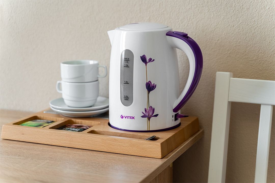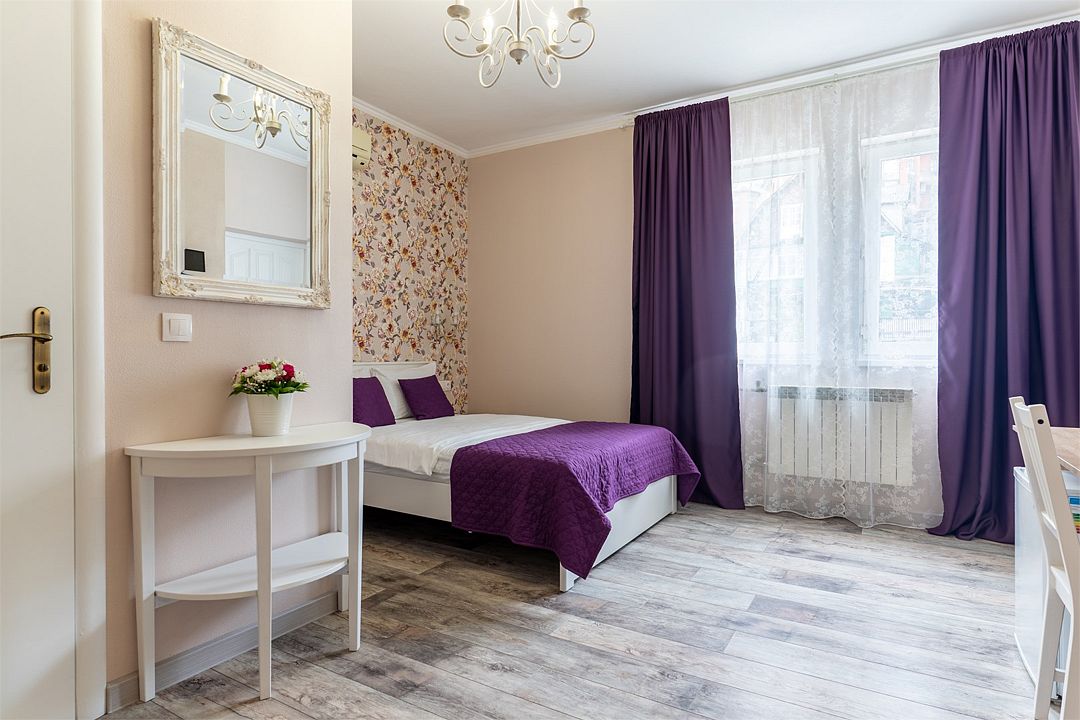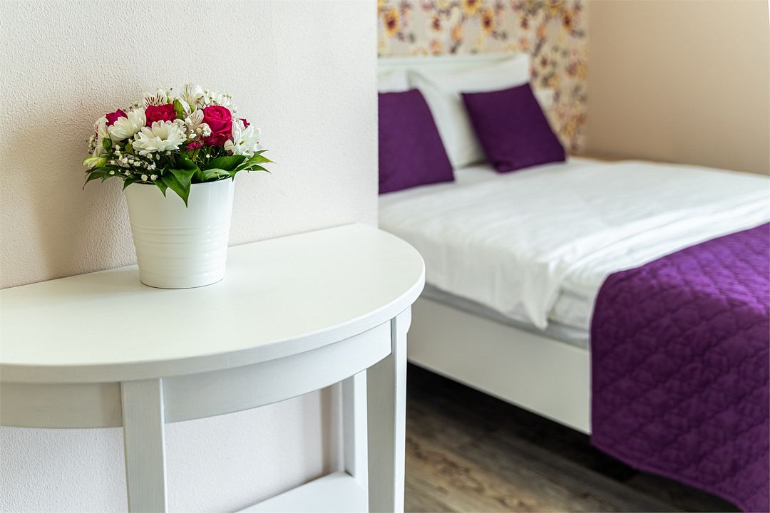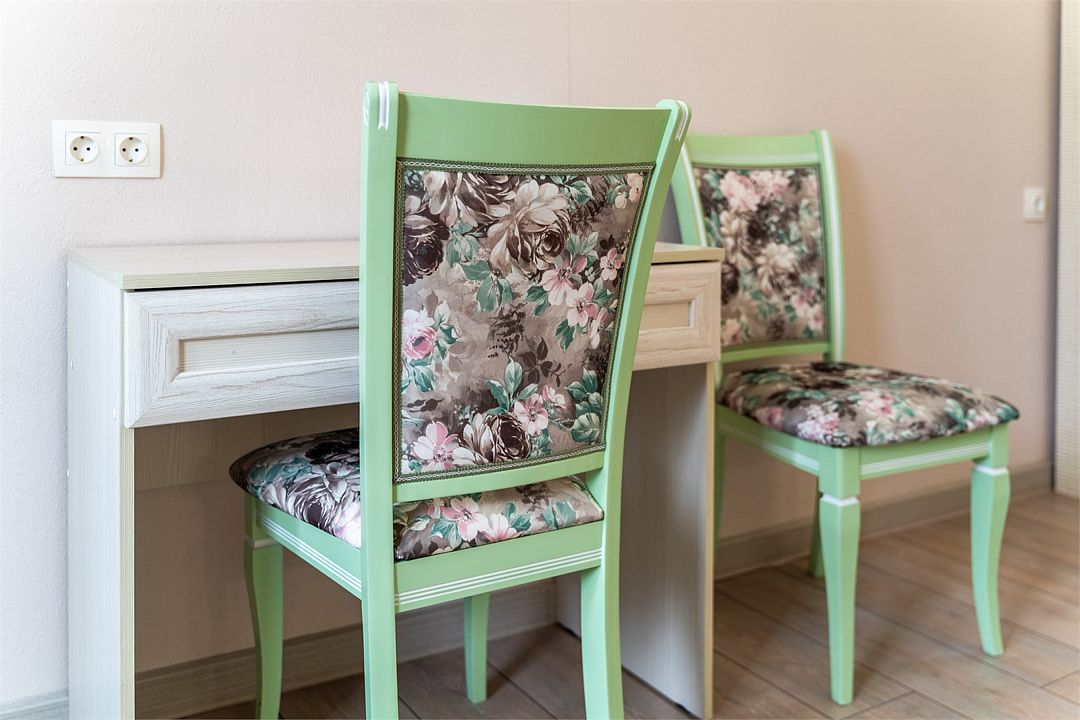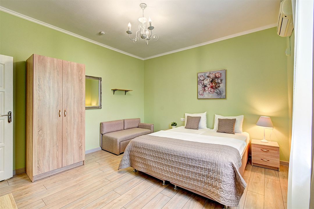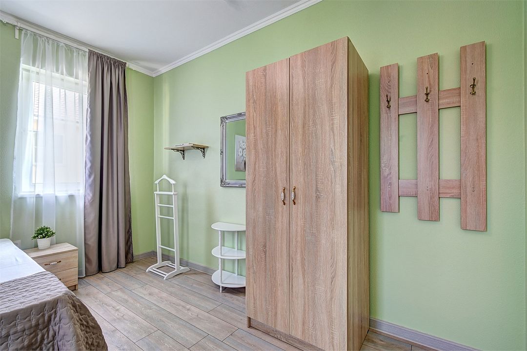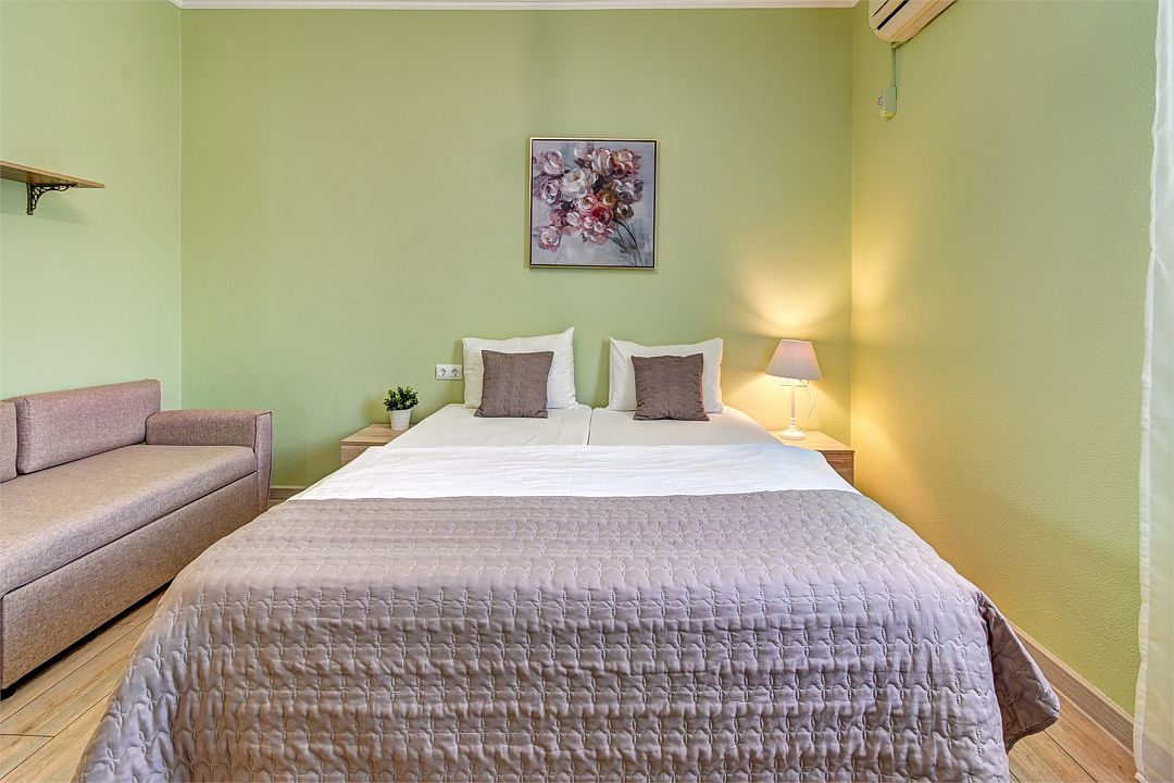 Улучшенный однокомнатный номер максимальной комплектации в стиле "Прованс". В каждом номере двуспальная кровать или две односпальные, кондиционер, холодильник, ТВ, чайная станция. Оптимальное решение для комфортного южного отдыха и полноценной работы.Услуги и удобства
