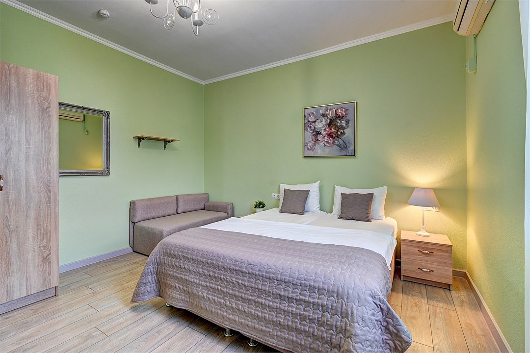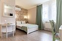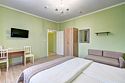 Просторные двухкомнатные номера повышенной комфортности. Номер состоит из двух комнат, двух санузлов, в каждой комнате двуспальная кровать или две односпальные, кондиционер, холодильник, ТВ, чайная станция. Идеальный вариант как для размещения семьи, так и отдельного человека. Все номера выполнены в классическом стиле.Услуги и удобства