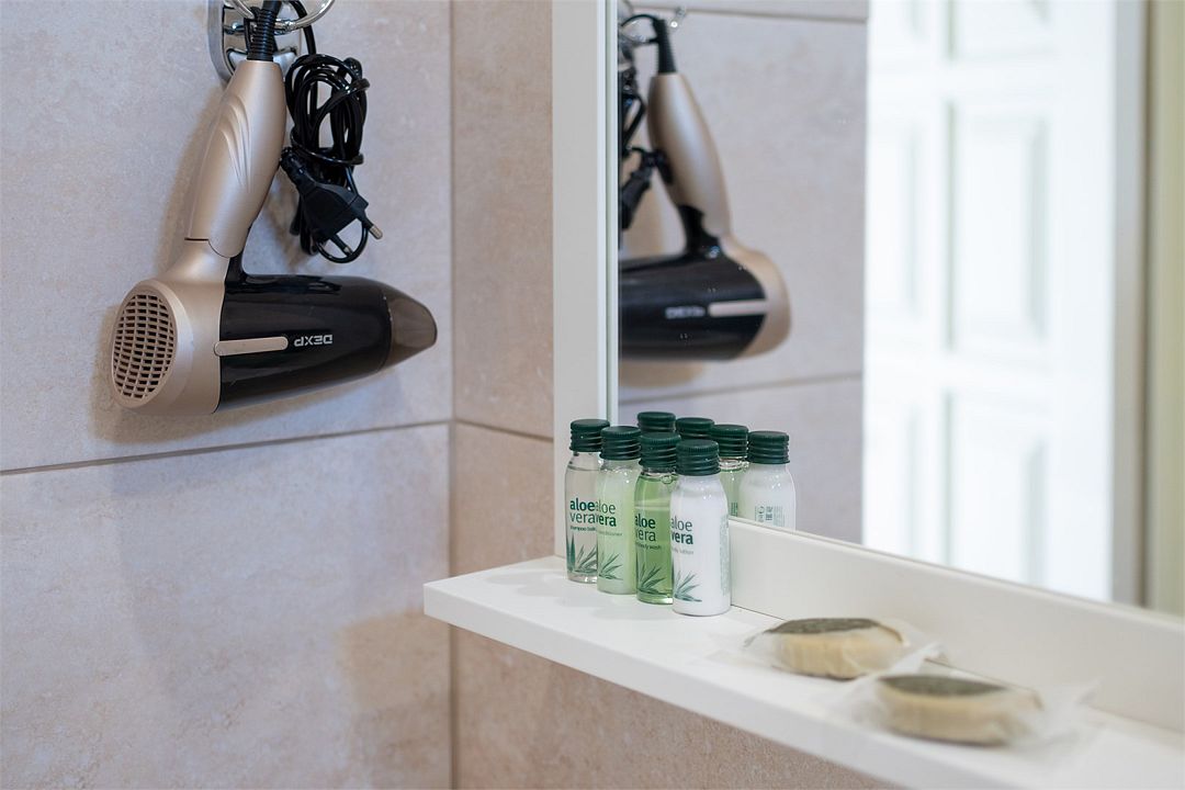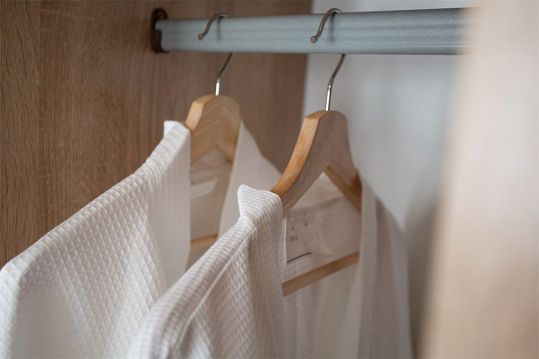 Wi-Fi, кондиционер, фен, халаты, тапочки, две двуспальные кровати, две односпальные или большая двуспальная кровать, стулья, шкаф для одежды, вешалки, журнальный столик, зеркало, душ, две ванные комнаты, телевизор с плоским экраном, мини-холодильник, гостиничная парфюмерияВ гостиничном номере