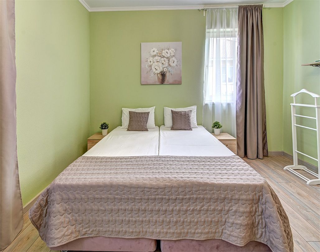 Однокомнатный уютный номер в классическом стиле стандартной комплектации. Практичный, бюджетный вариант для размещения туристов и гостей нашего города. В каждом номере двуспальная кровать или две односпальные, кондиционер, холодильник, ТВ, чайная станция.Услуги и удобства