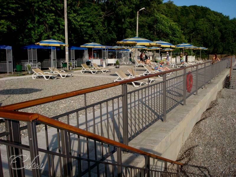 На пляже работает уютное кафе, в котором можно выпить прохладительные напитки, кофе, покушать мороженое. Территория пляжа охраняется.
