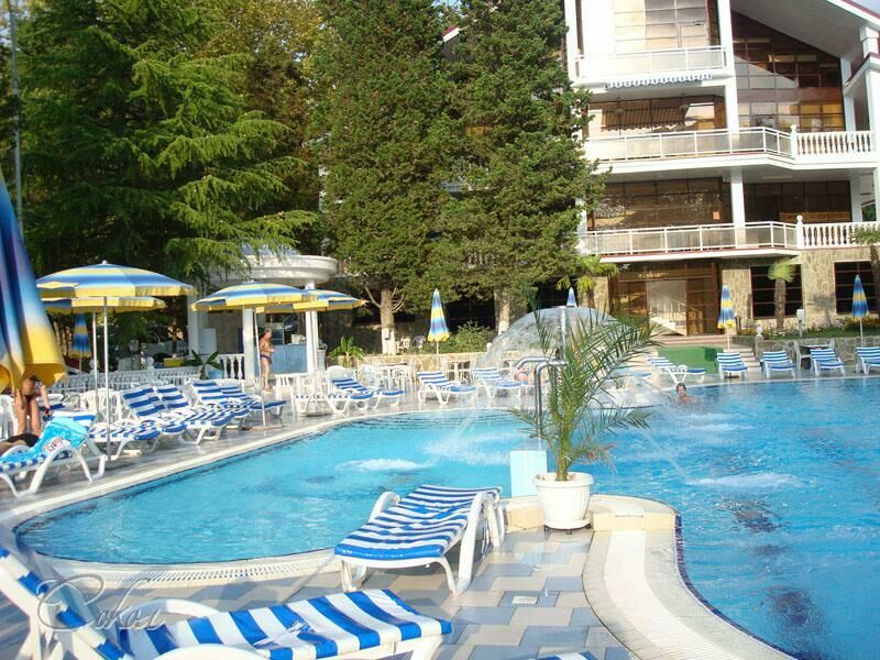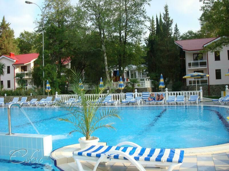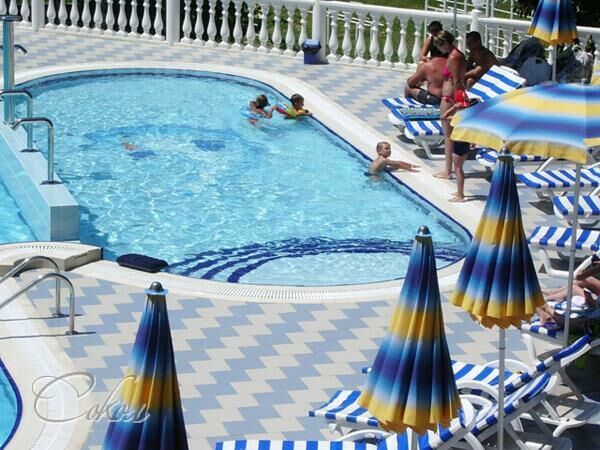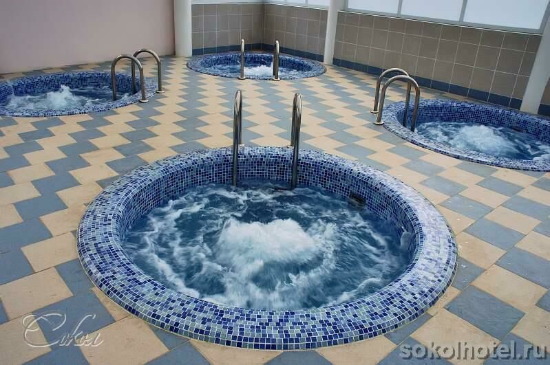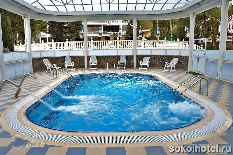 На территории пансионата «Сокол» находятся взрослый и детский бассейны с гидромассажными установками и фонтанами.
