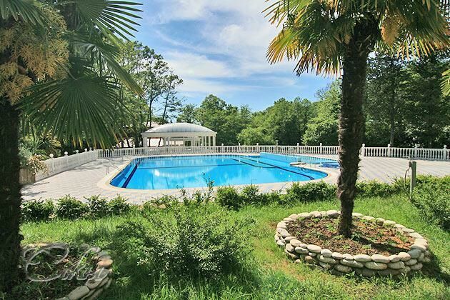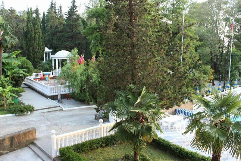 Пансионат состоит из двух 5-этажных зданий и десяти 2-этажных коттеджей, а также vip-корпуса и большого здания, в котором располагаются столовая, бар и другие помещения общего пользования. Из окон, с балконов и галерей корпусов открываются красивейшие виды морских далей, отрогов Кавказских гор и участков леса, полных редких субтропических растений. Территория пансионата, площадью в 4 га, имеет множество живописных мест, аллей, беседок, площадок и полян.