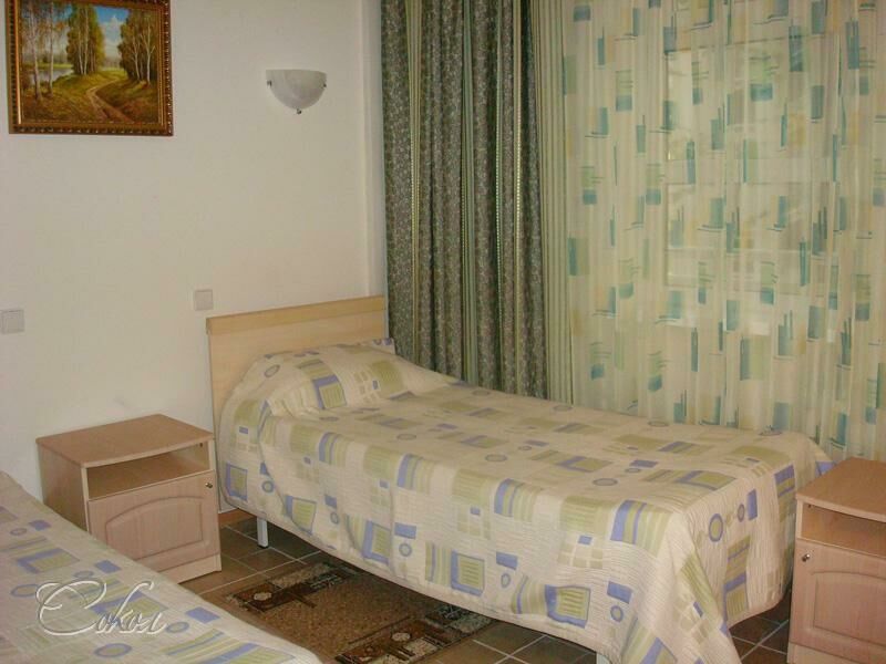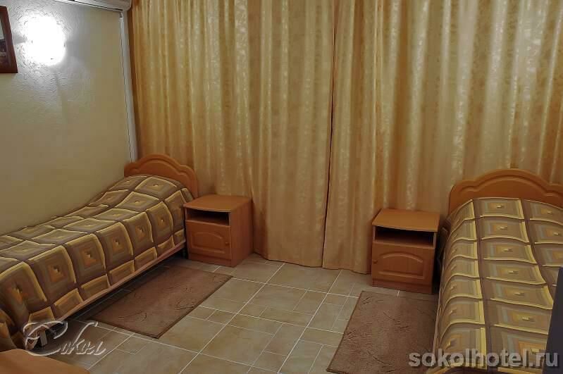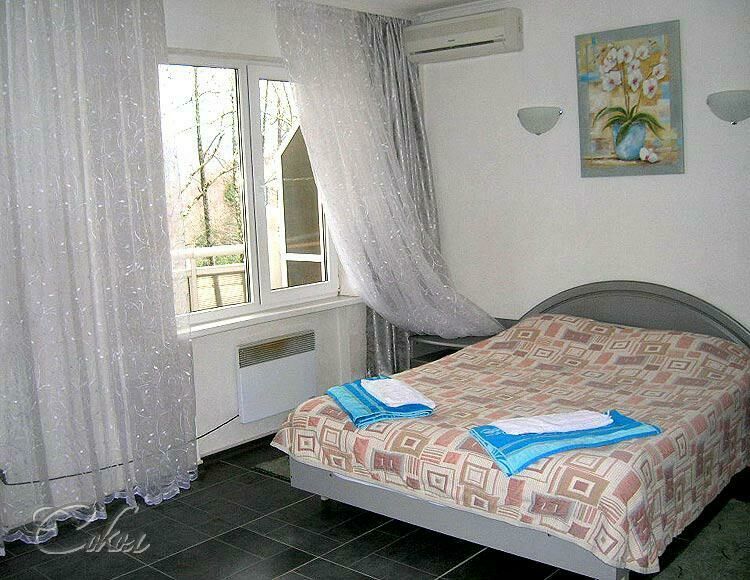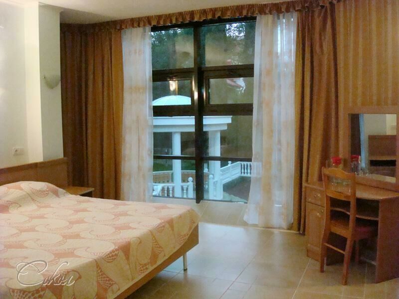 Номер включает в себя : душ, сан. узел, двуспальная/раздельные кровати, прикроватные тумбы, туалетный столик, стулья, сушилка для белья, сплит – система, холодильник, телевизор. Комплектация номера: полотенца банные, пляжные, полотенца для лица, ножное полотенце. Смена белья - раз в три дня, уборка - ежедневно. При необходимости номер может быть оборудован дополнительным местом – еврораскладушкой.