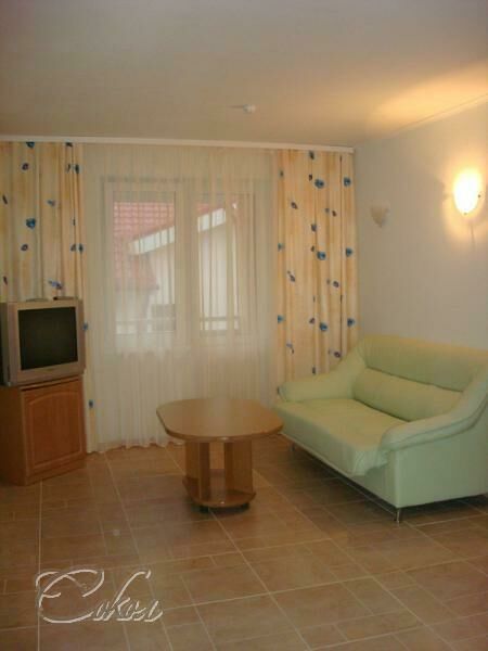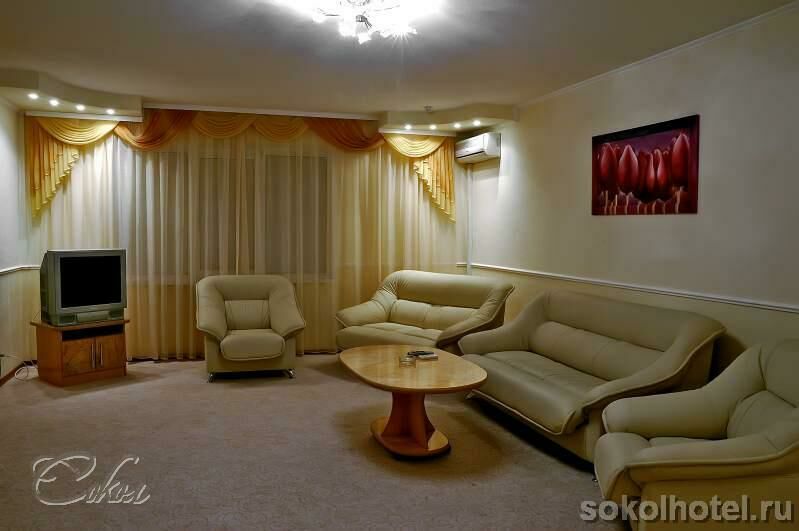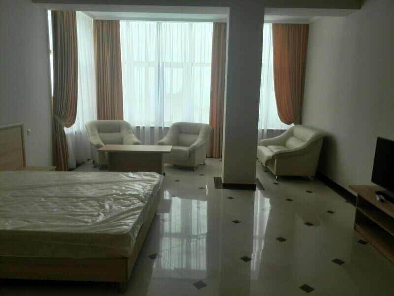 Номер: две спальни, гостиная, прихожая, ванная комната, сан. узел. Номер включает в себя: микроволновую печь, фен, чайник. В каждой комнате телевизор. Комплектация номера: полотенца банные, пляжные, полотенца для лица, ножное полотенце. Комнаты меблированы в европейском стиле.