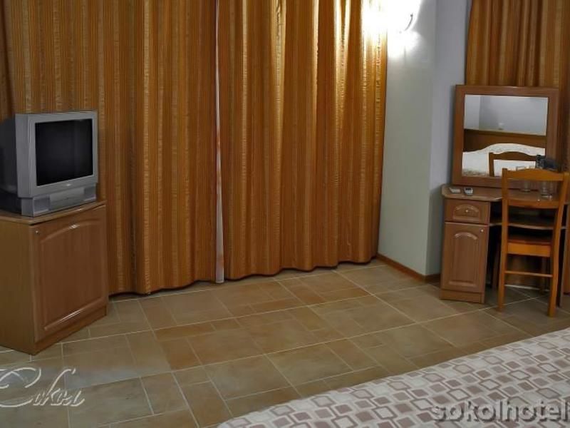 Трёхразовое питание по системе «шведский стол» производится в обеденном зале гостиницы. Кроме этого, есть основной ресторан «Сокола» специализирующийся на европейской кухне, гриль-бар на берегу реки, бар возле бассейна, диско-бар в корпусе для развлечений.