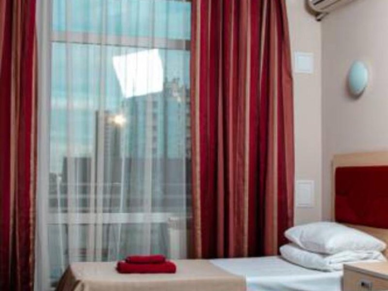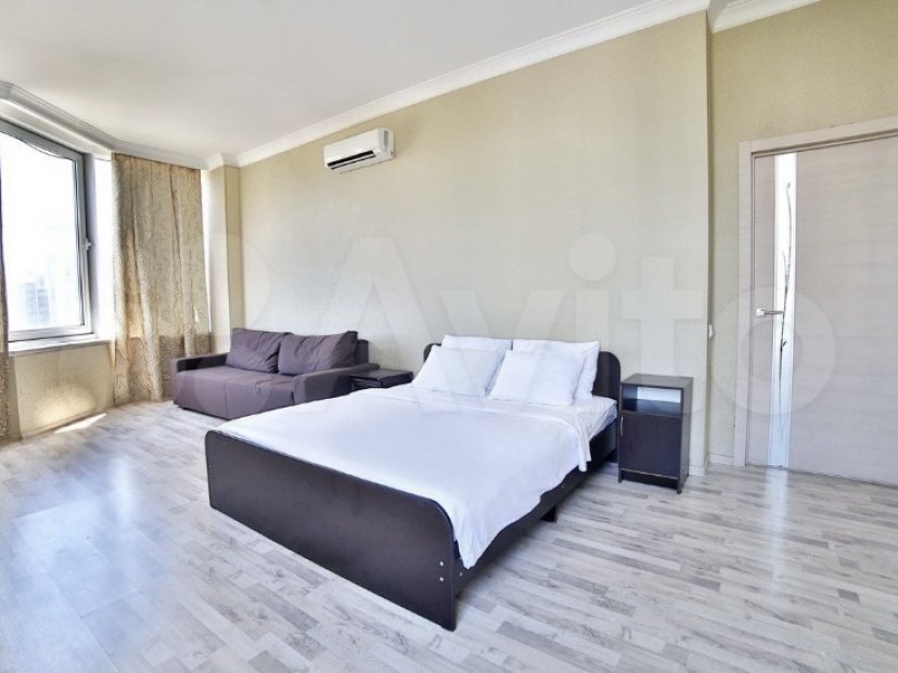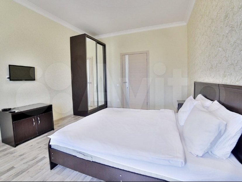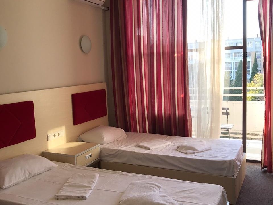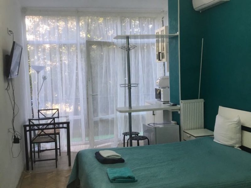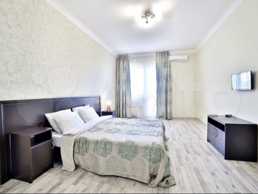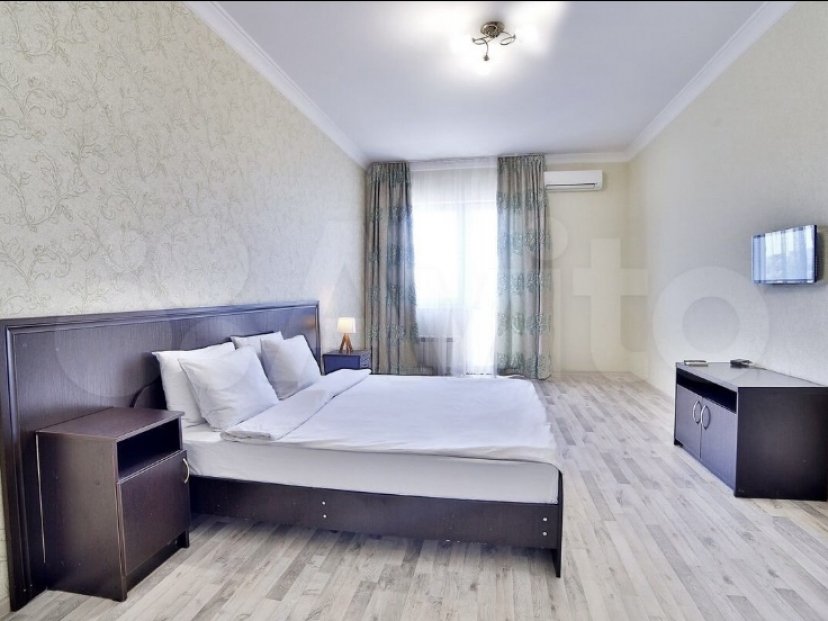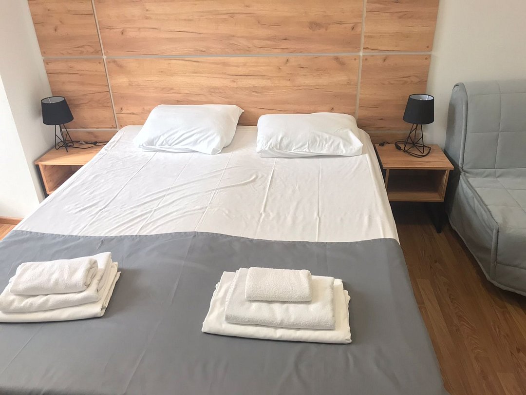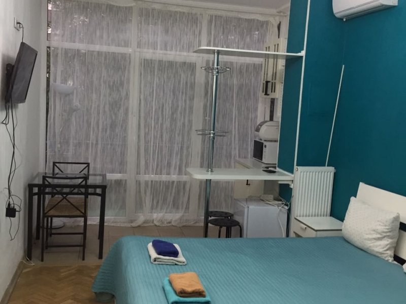 апартаменты двухместные с балконом. Большая кровать, душ, туалет, кухонный уголок, холодильник, чайник, микроволновка. Кондиционер, фен, стиральная машина, телевизор,Wi-FiВ гостиничном номере
