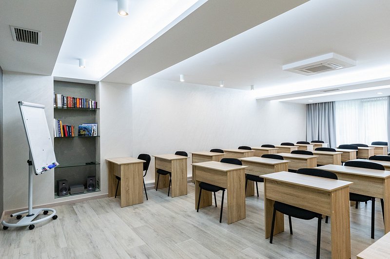Конференц-зал — отличное пространство для организации мероприятий среднего формата, включая тренинги, воркшопы, презентации и семинары. Удобная инфраструктура зала позволяет разместить до 35 участников, что создаёт комфортную атмосферу для продуктивной работы и взаимодействия.