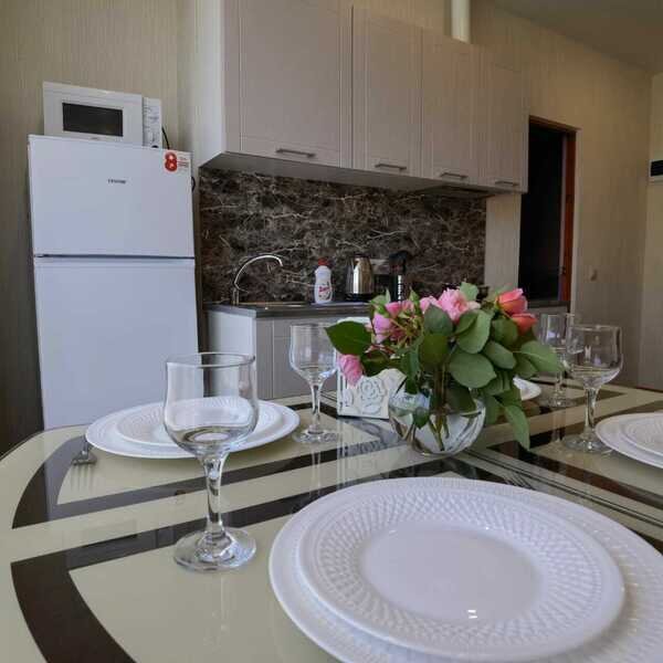 Четырехместный номер класса «Комфорт», с собственной кухней. Для гостей доступна детская кроватка по запросу.
