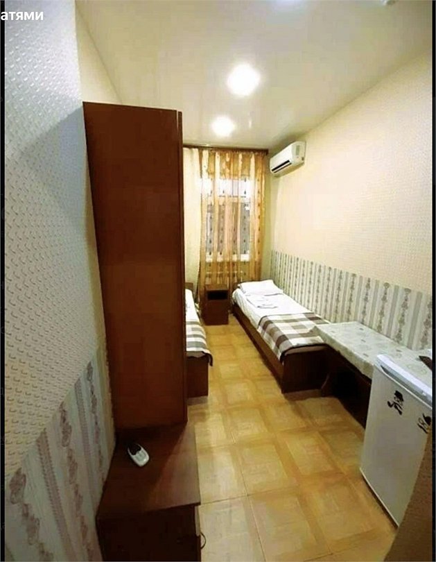 телевизор, спутниковое телевидение, Wi-Fi, интернет, кондиционер, фен, банные принадлежности, банные полотенца, пляжные полотенца, две односпальные кровати, тумбы, шкаф для одежды, вешалки, вид на город, вид во двор, стол, мини-холодильник, душ на этаже, вешалки-плечикиВ гостиничном номере