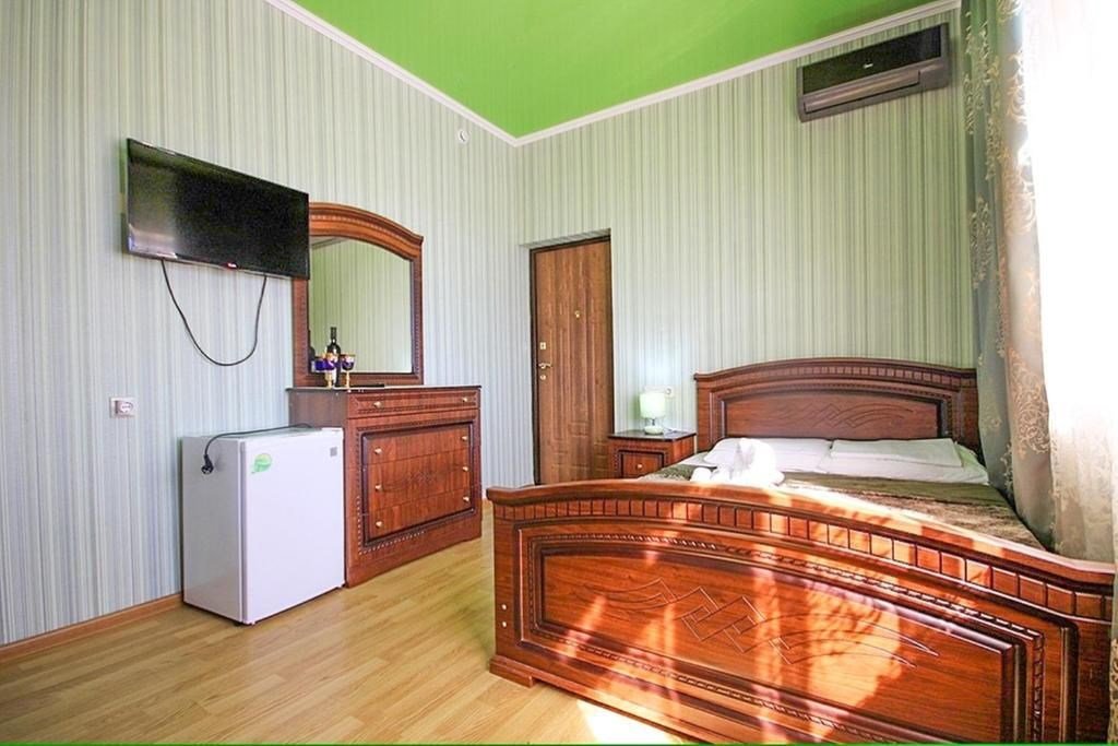 Уютный и светлый двухместный номер «Стандарт» идеально подойдёт для комфортного отдыха пары или гостей, ценящих удобство и приватность. Номер оформлен в тёплых тонах, с приятным интерьером и современной мебелью, создающей атмосферу спокойствия и уюта. В номере установлена двуспальная кровать с удобным матрасом, чистым постельным бельём и полотенцами. Большие окна наполняют комнату естественным светом, делая пространство особенно комфортным. В номере: • кондиционер • телевизор с плоским экраном • холодильник • шкаф для одежды • прикроватные тумбы • стол • бесплатный Wi-Fi Санузел в номере Номер оснащён собственной ванной комнатой с душем, туалетом и раковиной. Всегда есть горячая и холодная вода, предоставляются гигиенические принадлежности. Двухместный номер «Стандарт» в гостевом доме «Три пальмы» — это отличное сочетание комфорта, уюта и удобного размещения для спокойного отдыха у моря.Услуги и удобства