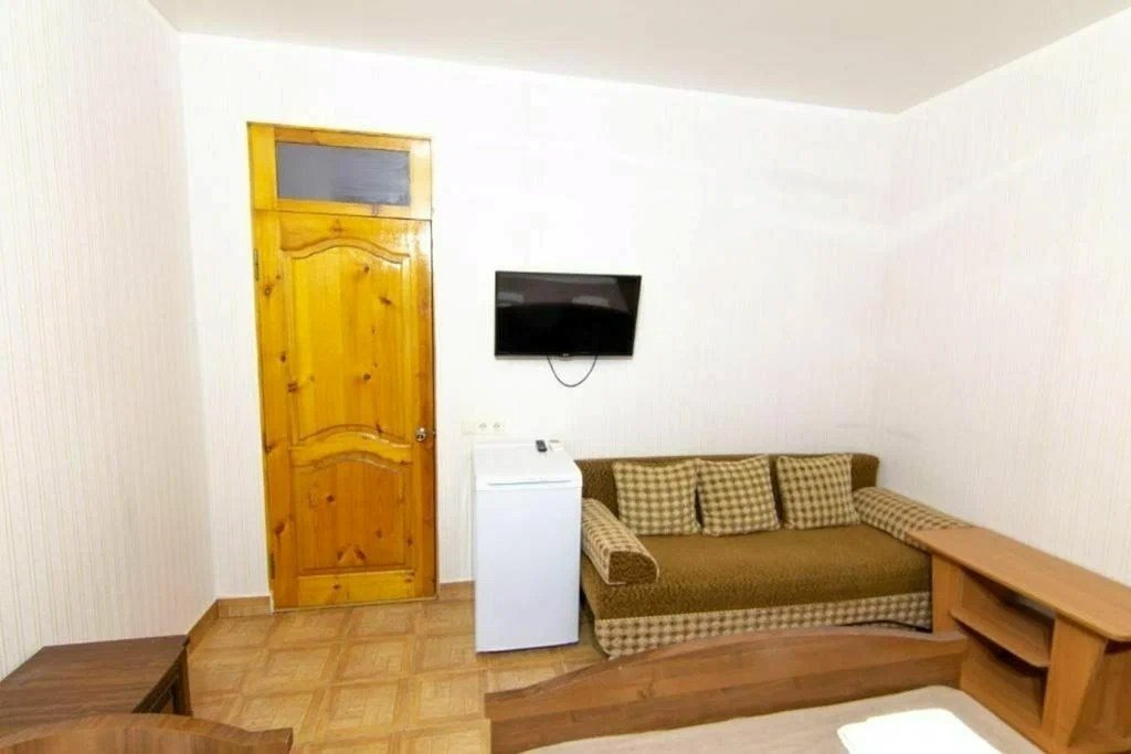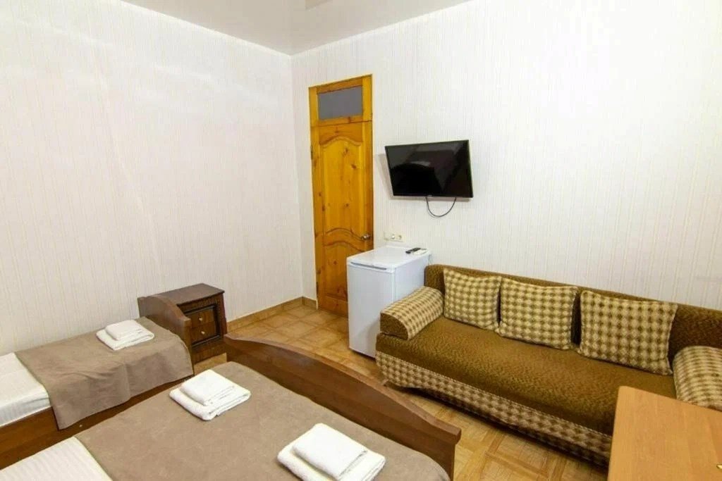 Просторный четырёхместный номер — отличный выбор для семей с детьми или компаний, ценящих удобство и пространство. В номере расположены: • одна большая двуспальная кровать • две односпальные кровати Интерьер выполнен в спокойных тонах, комната светлая и хорошо проветриваемая. В номере: • кондиционер • телевизор • холодильник • шкаф и тумбы для вещей • стол • бесплатный Wi-Fi Санузел в номере: душевая зона, туалет, раковина, постоянно горячая вода, полотенца и базовые туалетные принадлежности. Номер идеально подходит для комфортного проживания во время пляжного отдыха и экскурсий.Услуги и удобства