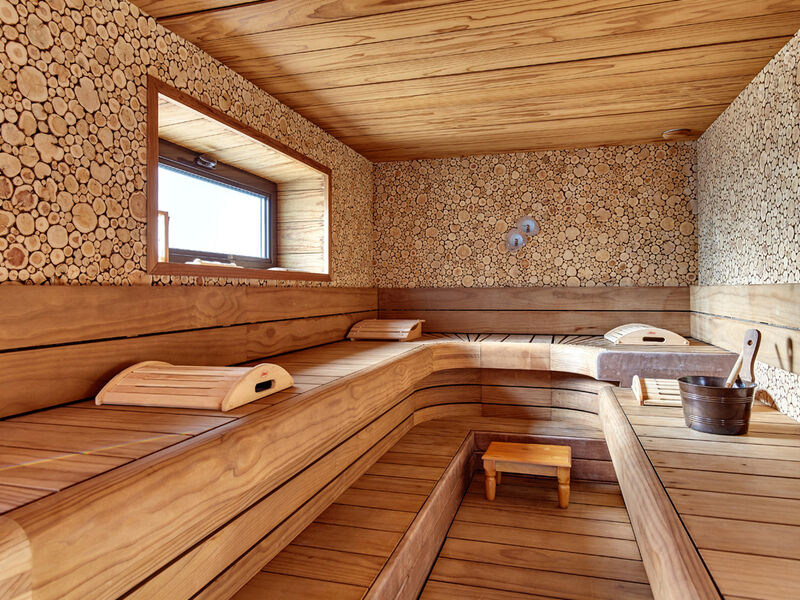 Насладитесь атмосферой финской сауны с отделкой из натурального можжевельника. Печь сауны выложена полудрагоценным минералом — жадеитом и талькохлоритом. Вместимость сауны — до 5 человек единовременно.