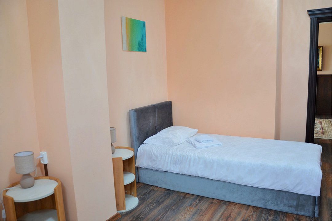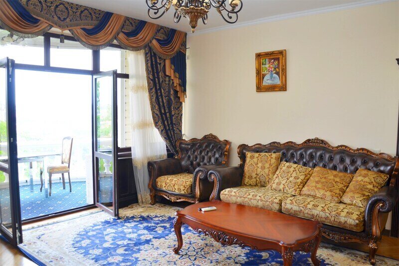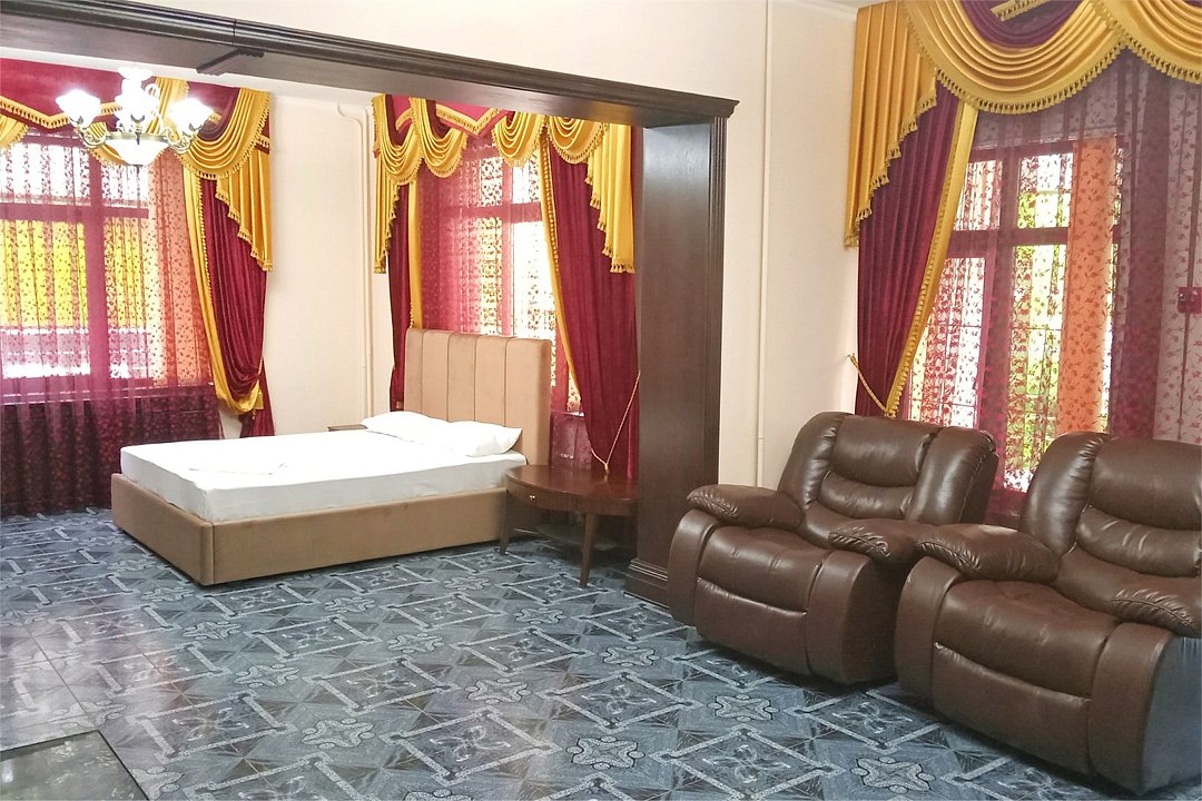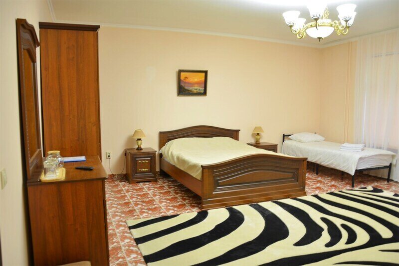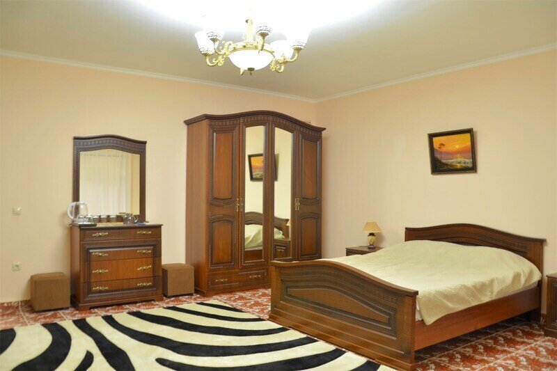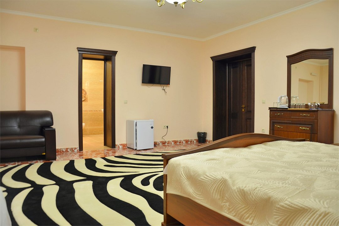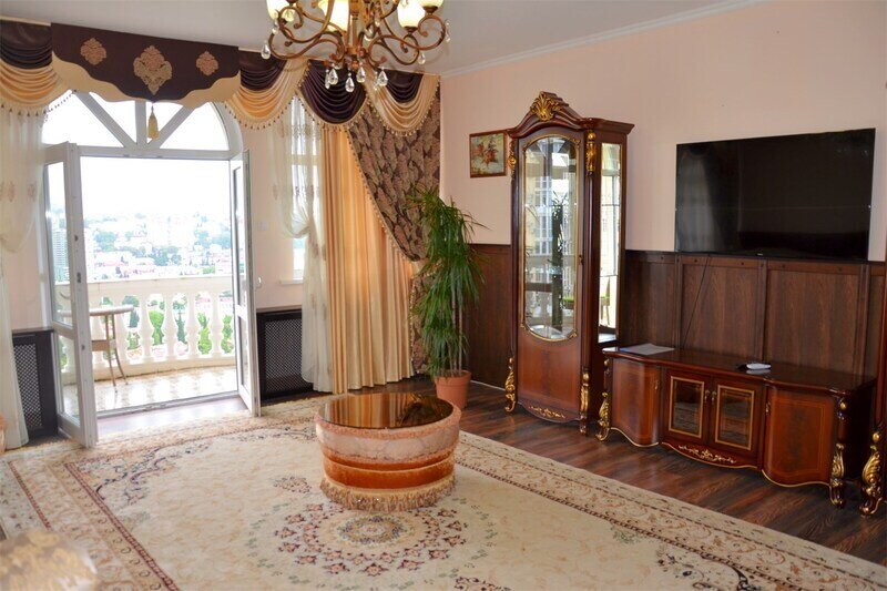 "Люкс с балконом" идеальный выбор для семьи или компании до 6 человек, т.к. это 3-х комнатный просторный номер площадью 95 м2 с шикарными видами на город и море с балкона. В 1-й спальне для Вас большая удобная двуспальная кровать с ортопедическим основанием, прикроватные тумбы и светильники. Также в спальне есть комод с зеркалом, большой шкаф, телевизор, кондиционер, холодильник и стул. Из неё есть проход в ванную комнату с душем, туалетом, феном, комплектом полотенец и гигиеническими принадлежностями. В просторной гостиной имеется большой диван-кровать и 2 кресла из резного дуба ручной работы, журнальный столик, стул, комод с зеркалом и чайной станцией, шкаф-стенка с телевизором и Wi-Fi роутером. Из гостиной Вы можете выйти на просторный балкон со столиком, диваном и 2 стульями из ротанга и провести время в уютной обстановке, наслаждаясь потрясающими видами на город и море, а также свежим морским воздухом. Это идеальное место для утреннего кофе или романтического ужина под открытым небом. Во второй спальне 2 односпальные кровати с прикроватными тумбами, кондиционером, холодильником, телевизором, шкафом и 2 стульями для комфортного отдыха. Кроме того, у отеля есть зона отдыха с бассейном и мангальной зоной, где Вы можете чудесно провести время в кругу друзей или близких. Отель также находится в непосредственной близости от развлекательного парка Ривьера, где Вы сможете насладиться прогулками и активным отдыхом. Побалуйте себя и своих близких роскошным отдыхом! Забронируйте "Люкс с балконом" и проведите время незабываемо в центре Сочи с шикарными видами на горы и море!Услуги и удобства
