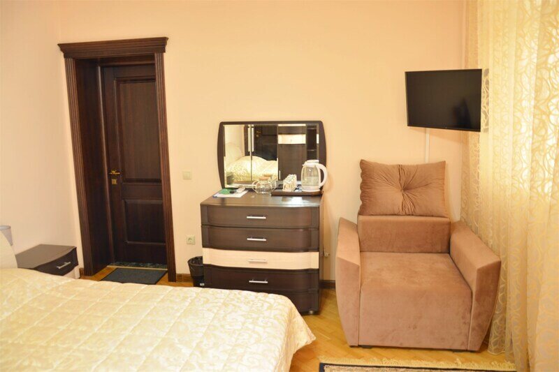 Стандарт с балконом и видом на красивую территорию Бутик-отеля RP Усадьба - отличный выбор для размещения в центре города! Номер общей площадью 22 м2 идеально подходит для размещения до 3-х человек. В номере есть всё необходимое для комфортного отдыха: большая двуспальная кровать, кресло-кровать, прикроватные тумбы со светильниками, мини-холодильник, Телевизор, кондиционер, Wi-Fi и комод с зеркалом. А балкон номера станет для Вас настоящим райским уголком. В ванной комнате: фен, комплект полотенец и гигиенические принадлежности. Стандарт с балконом и видом на красивую территорию Бутик-отеля RP Усадьба - идеальный выбор для тех, кто ищет комфорт с выгодой! Забронируйте номер и получите максимум удовольствия от своего отдыха!Услуги и удобства