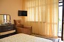 Двуспальная кровать, прикроватные тумбы, мини-холодильник, туалетный столик с зеркалом, телевизор, кондиционер