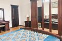 Двуспальная кровать, две односпальные кровати, диван и кресло, туалетный столик с зеркалом, телевизор, шкаф для одежды, кондиционер, мини-холодильник, балкон