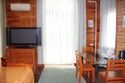 Люкс, отделанный деревом номер – студия. В номере: двуспальная кровать, три односпальные кровати, мебель из ангарской сосны: стол, стулья; телевизор, холодильник, кондиционер, Wi-Fi. Ванная комната: раковина, туалет, душ. Вид на сад.