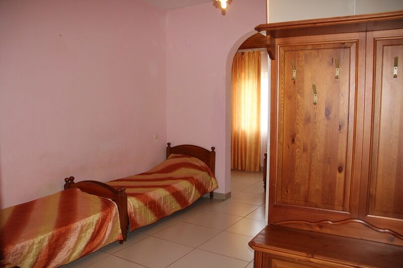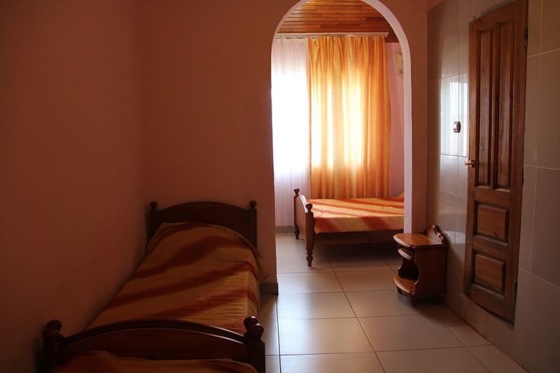 Семейный номер, имеется двуспальная кровать, две односпальные, телевизор, Wi-Fi. Вид на город.