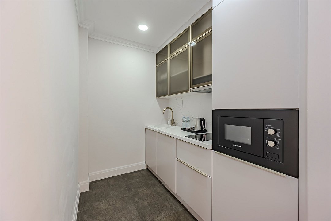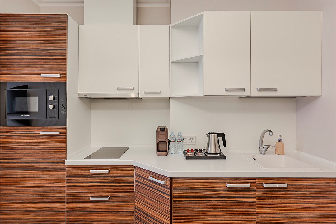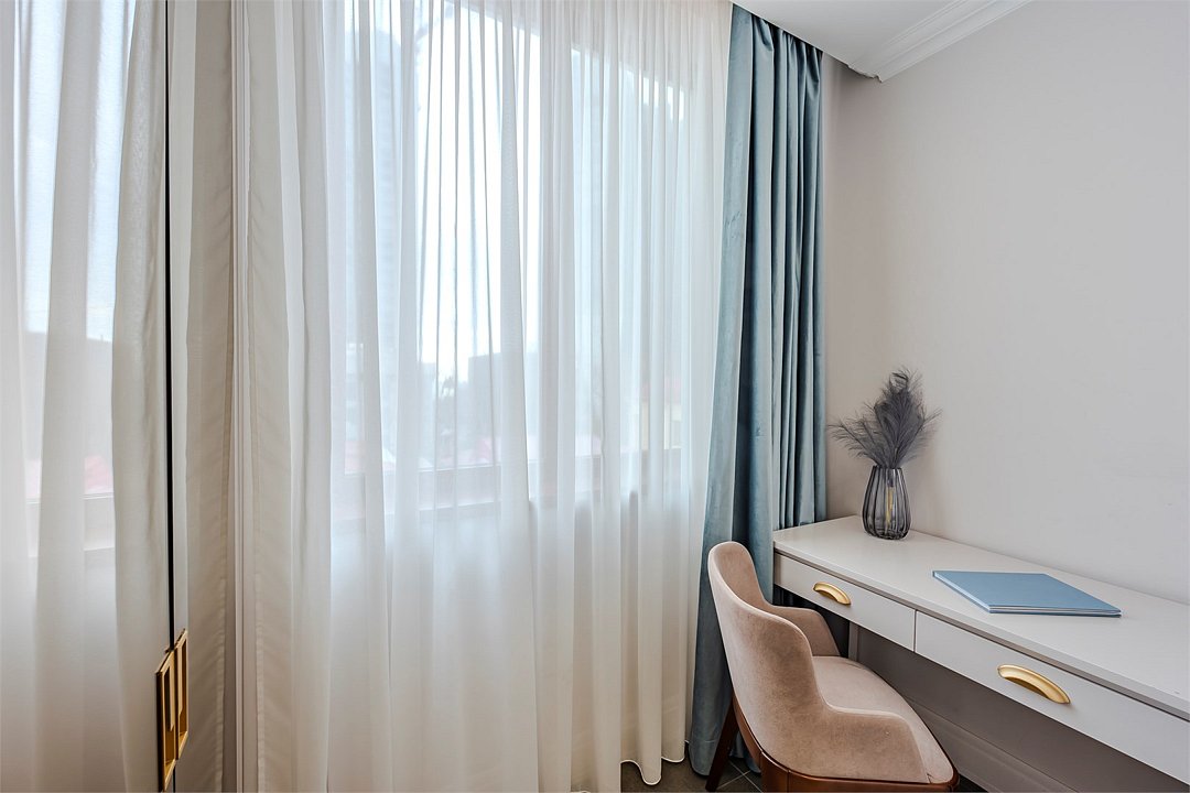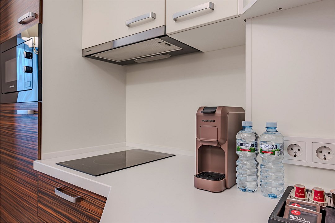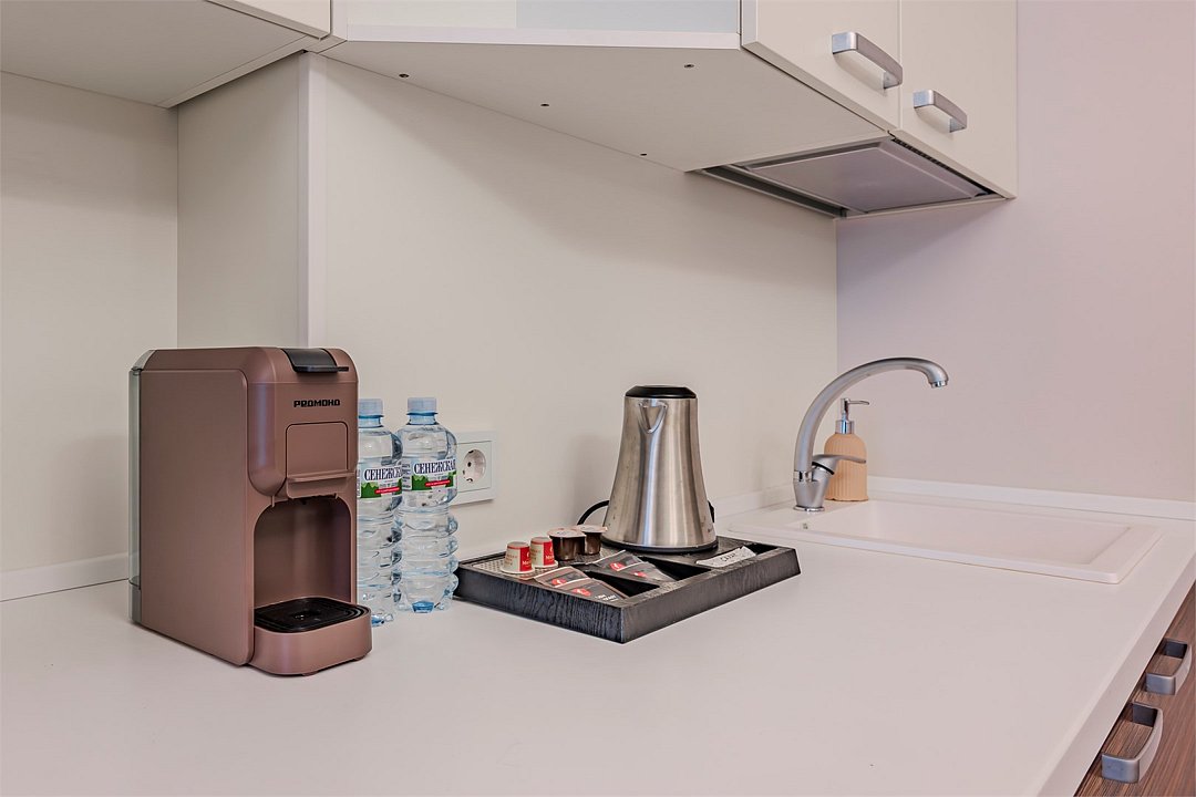 Все номера оснащены кухнями. Двухслойные стеклопакеты обеспечат полную звукоизоляцию. Блэкаут шторы, в закрытом состоянии полностью поглощающие свет, обеспечат полноценный глубокий сон.